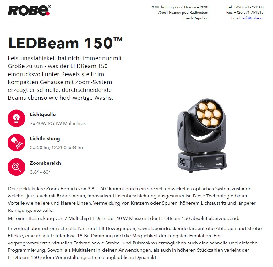 ROBE LEDBeam 150 7x40W RGBW Multichips 3550 lm Zoom 3,8°-60°