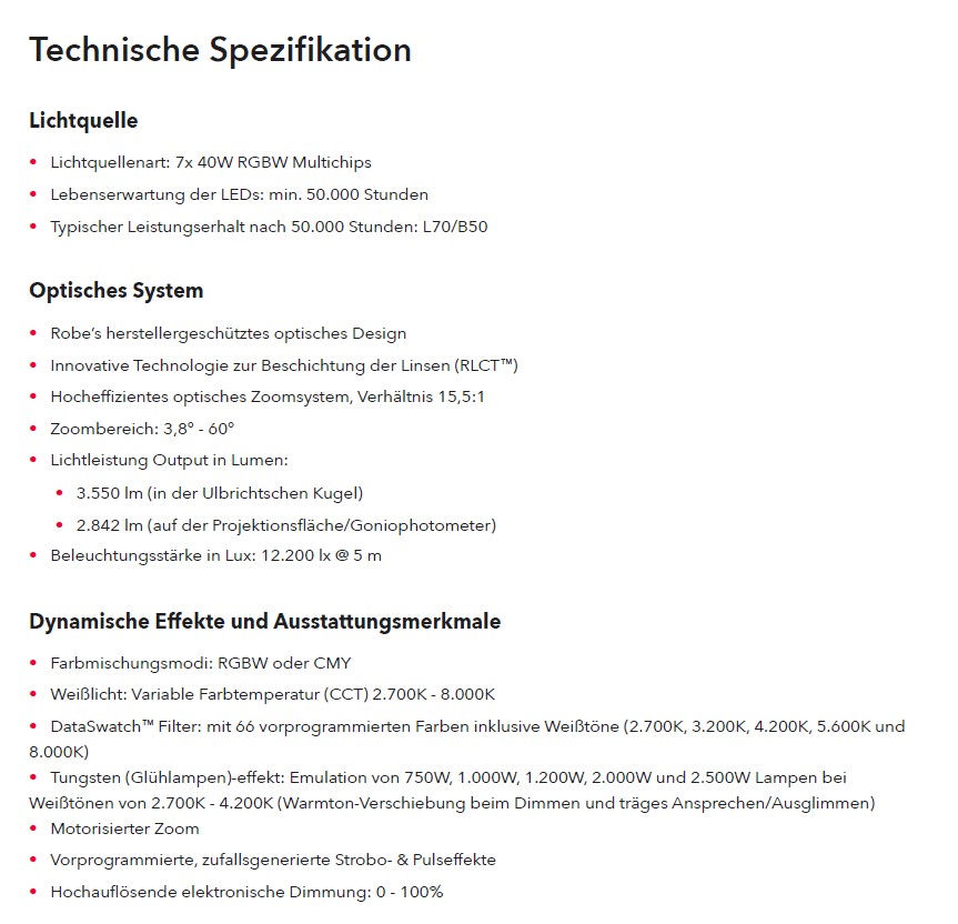 RGBW oder CMY, CCT von 2700-8000K Zoom von 3,8°-60°