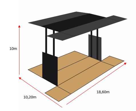 2 extensions sur l'avant de la scène 3 x 3 mètres chacune.