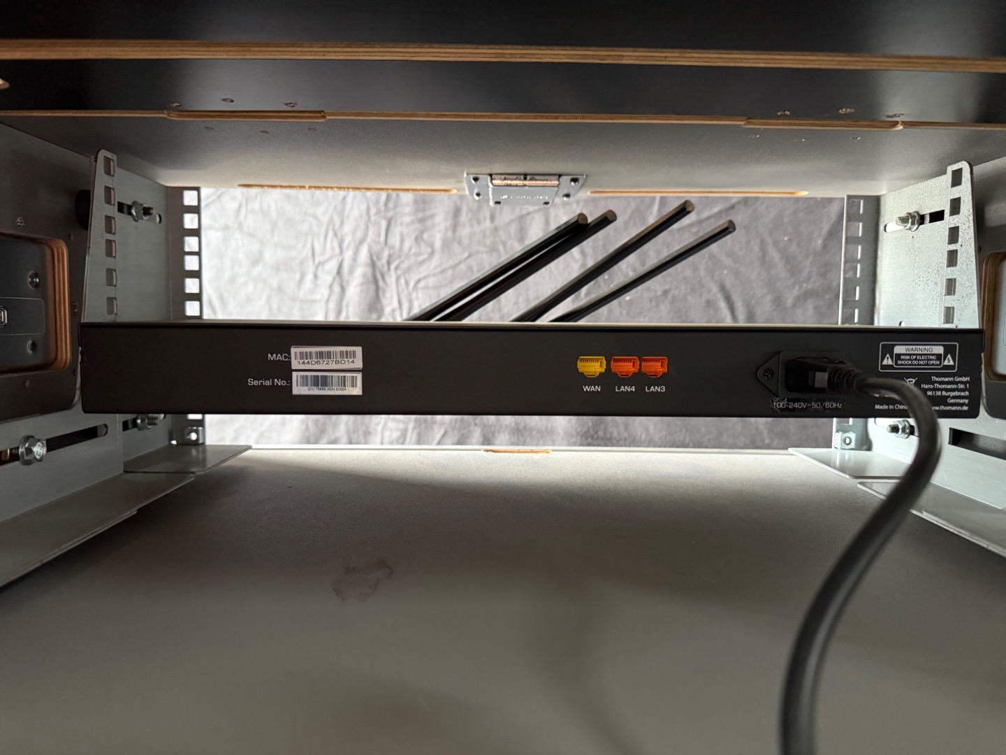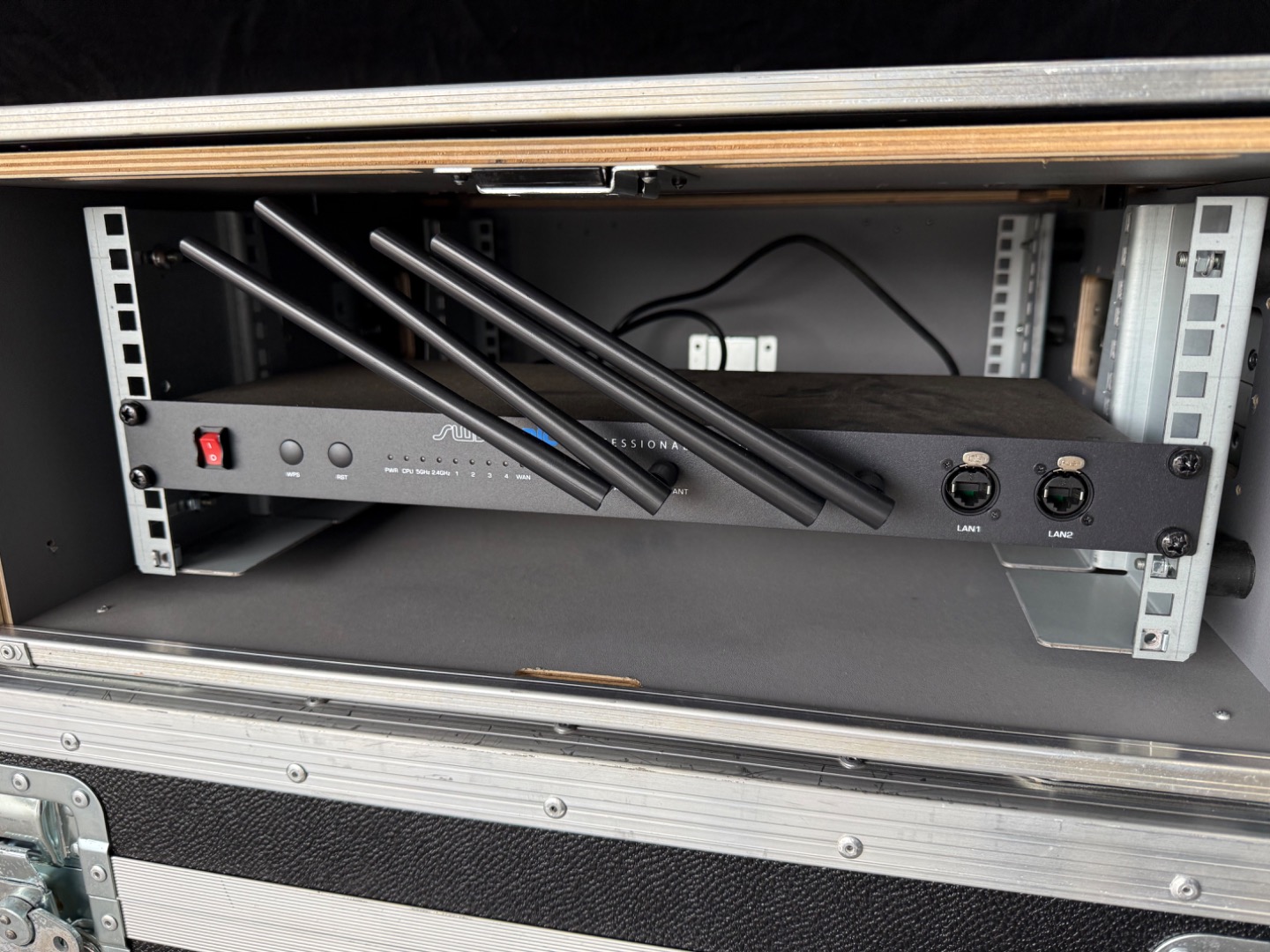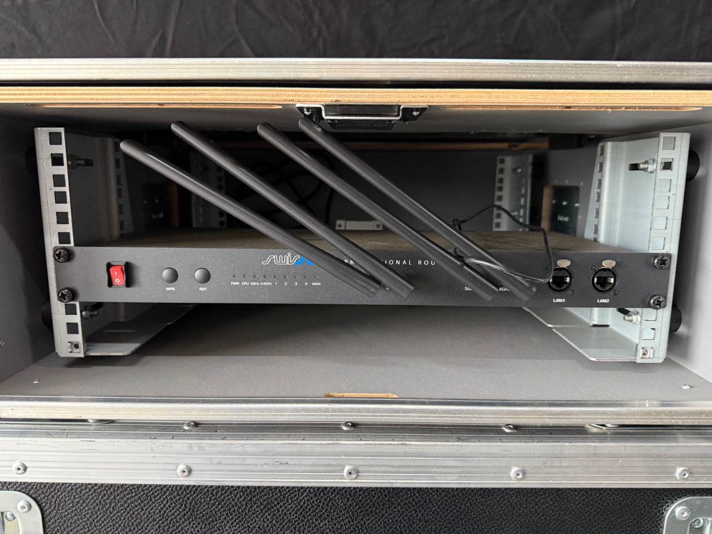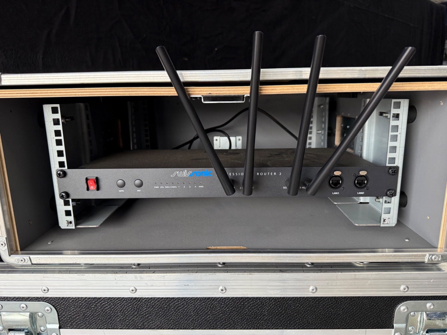 Das Gerät ist in einem 19"/1HE Gehäuse untergebracht und hat ein integriertes Netzteil- ein Router speziell für Musiker, Bands und Tontechniker.