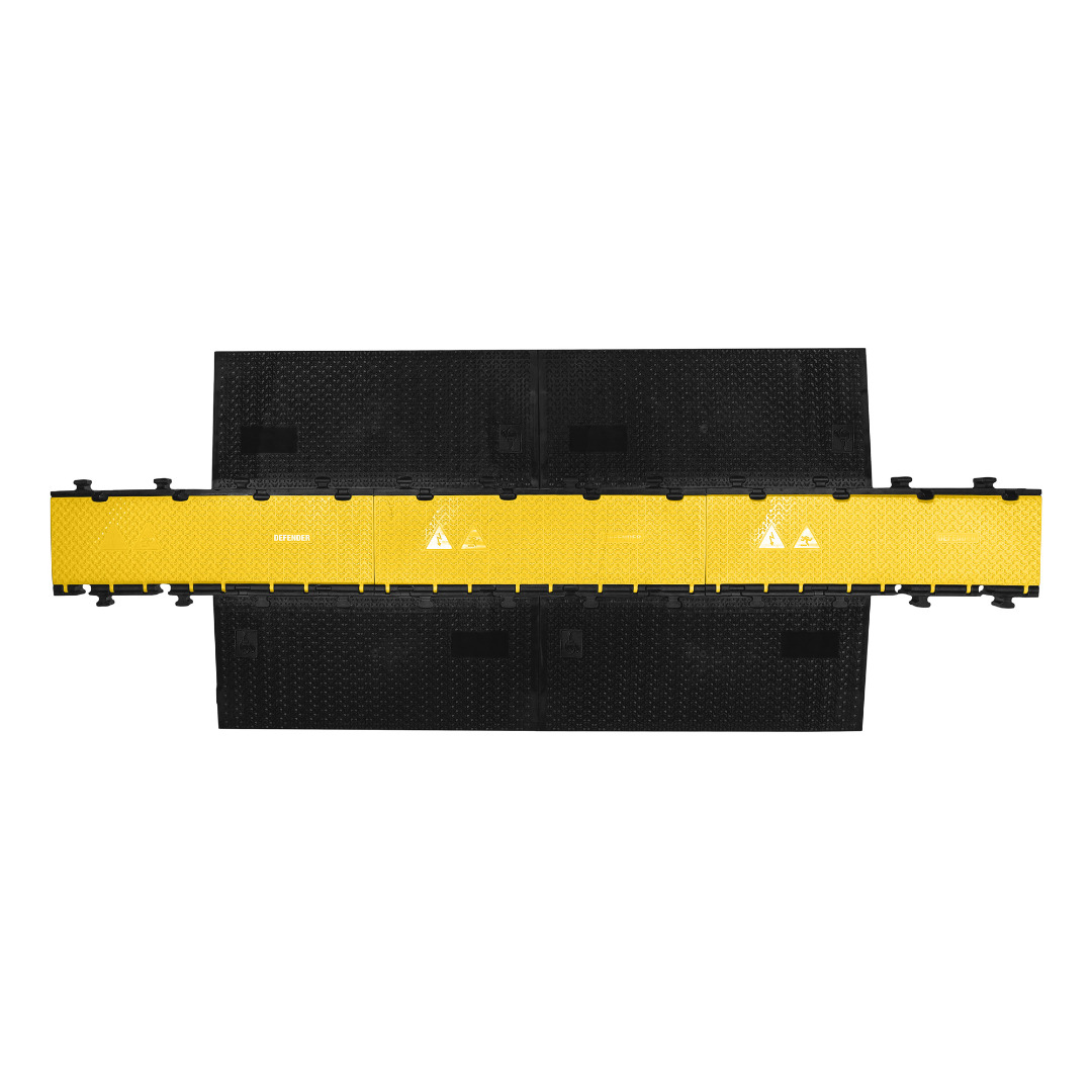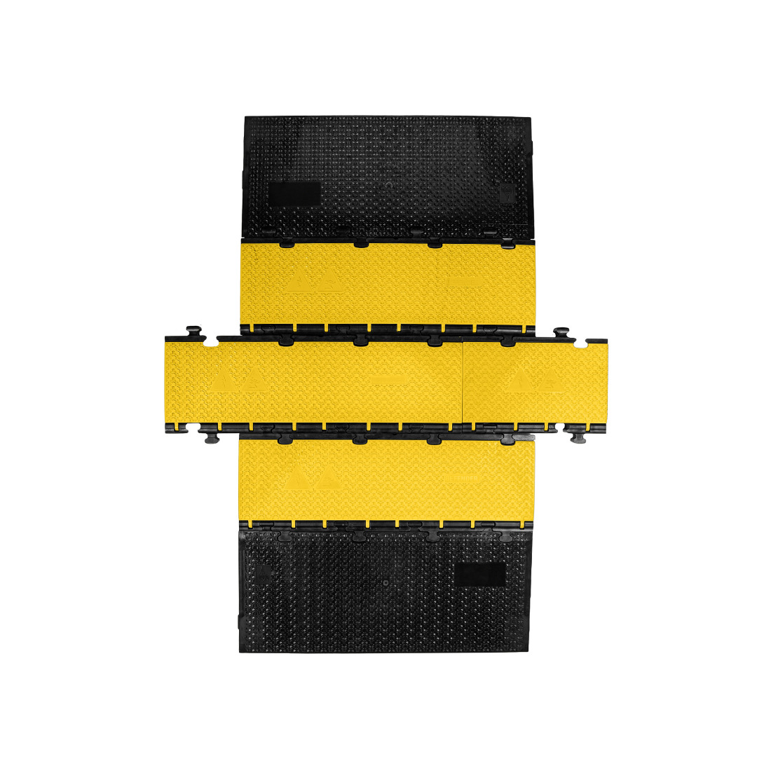 Hochbelastbare Allround-Kabelbrücke mit 3D-Lasergrip Anti-Rutsch-Oberfläche aus blauem, recyceltem Polyurethan und patentiertem selbst reinigendem Deckel-Scharnier