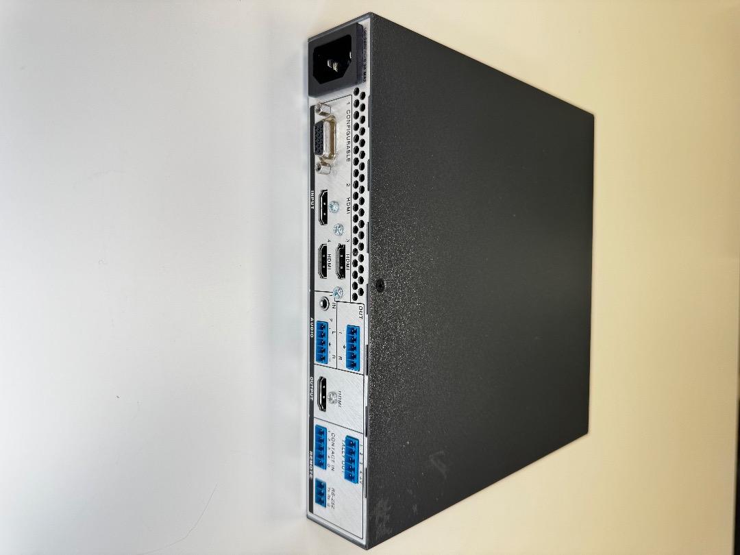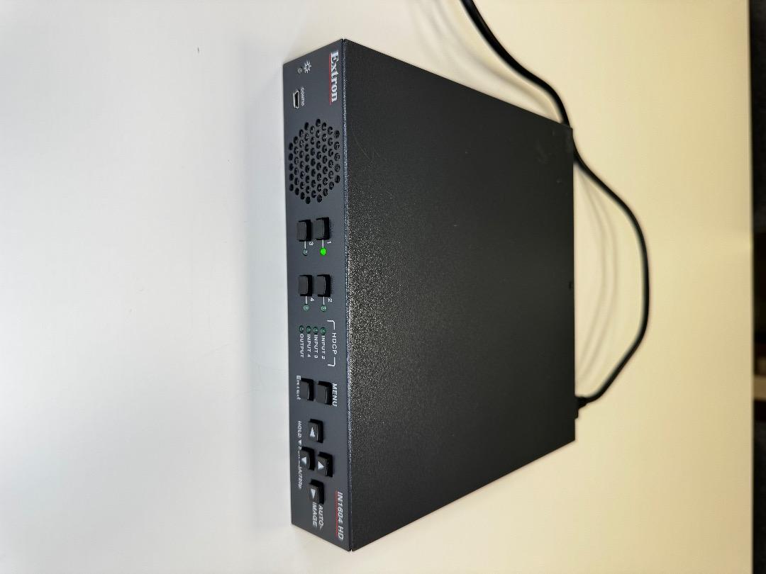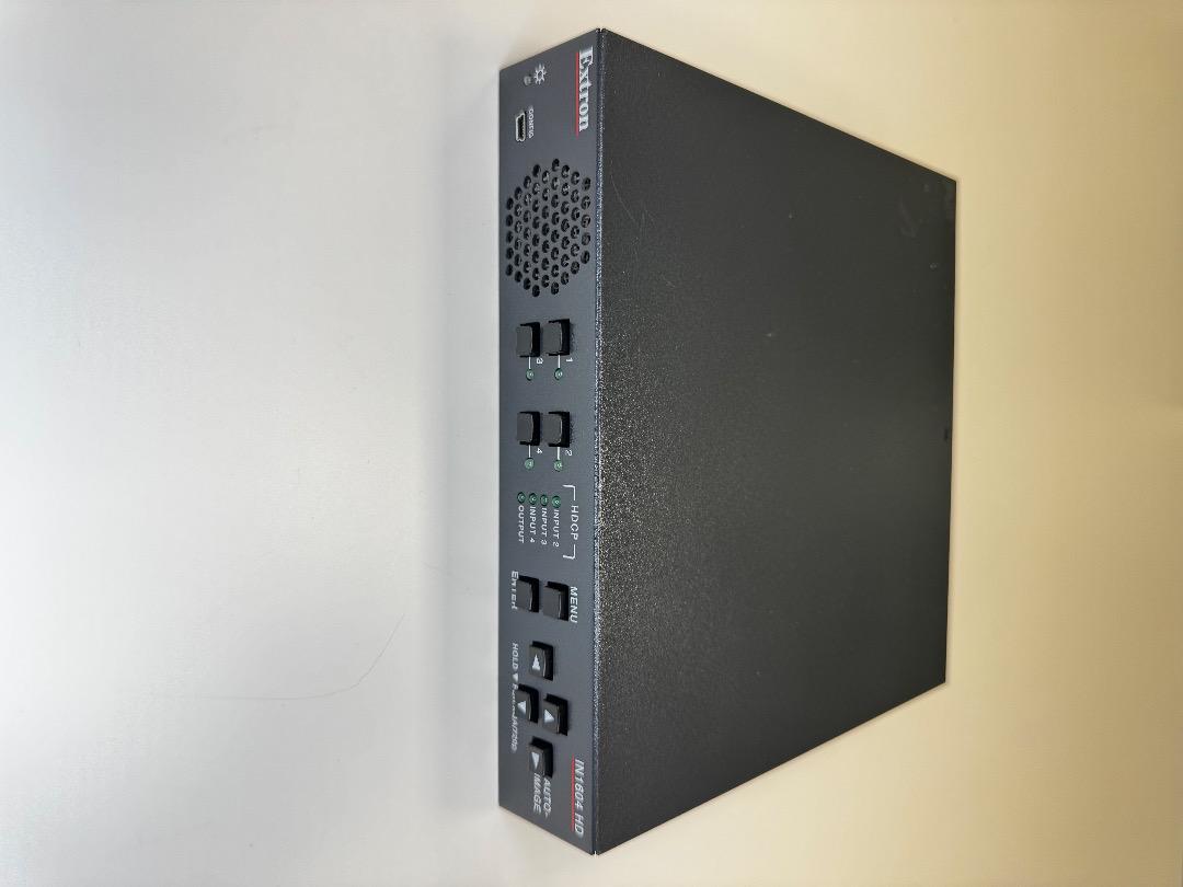The Extron IN1604 HD is an HDCP-compliant scaler with HDMI inputs and outputs. It is in very good used condition (see pictures). Unfortunately, the original packaging and manufacturer's description are not included. A power cable is included.