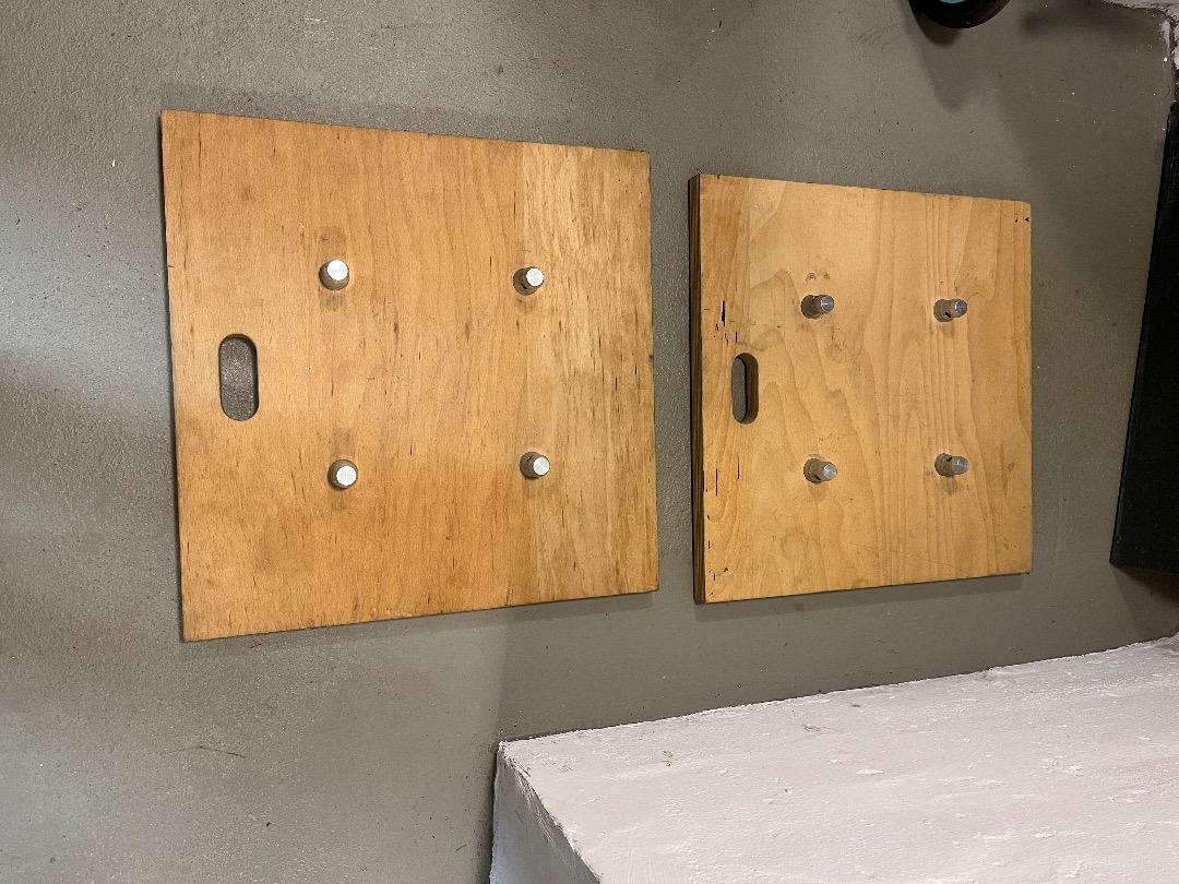 Zu verkaufen stehen 2 Bodenplatten aus Holz.