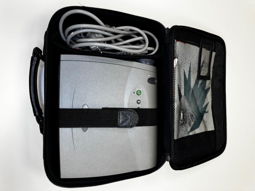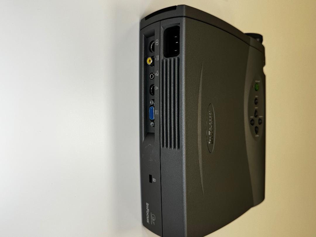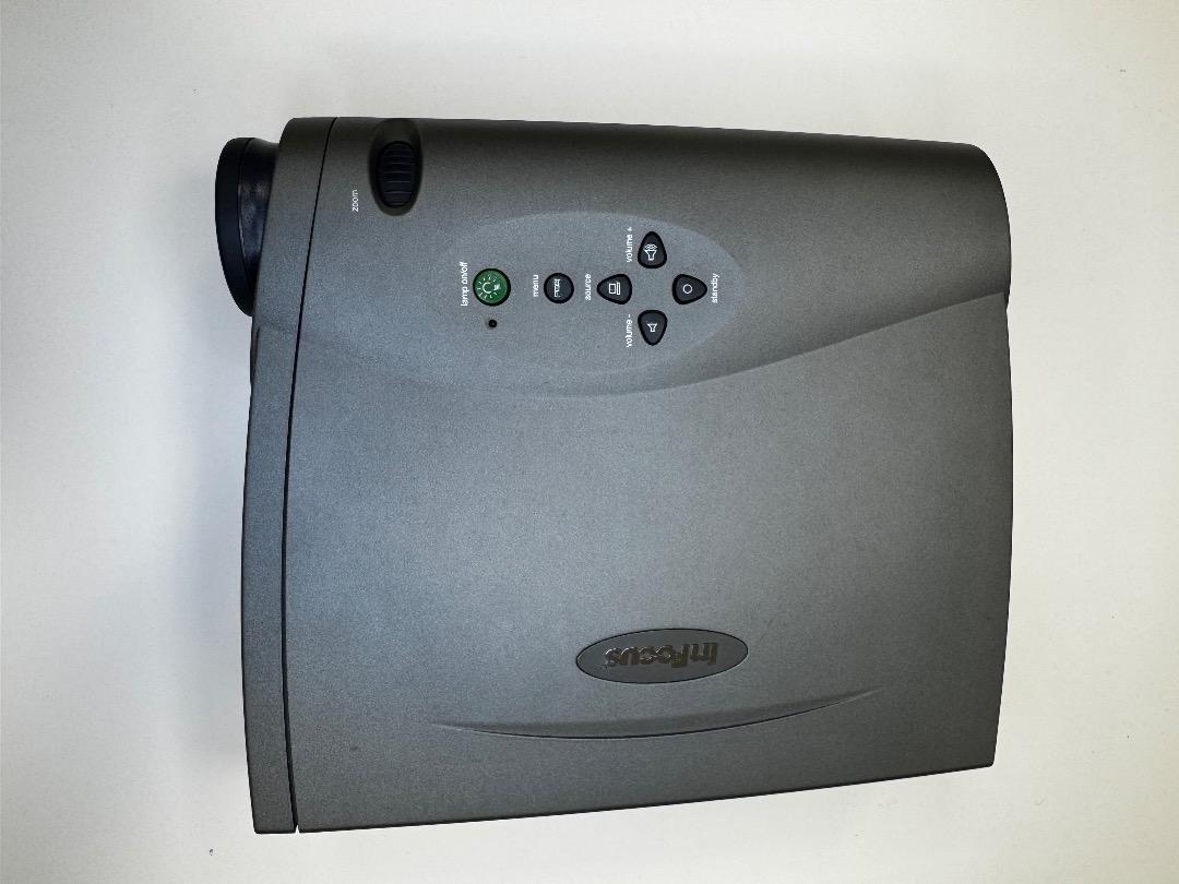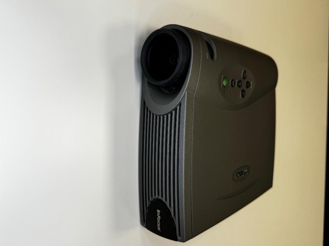 The InFocus projector is in very good used condition (see pictures). It produces a good image and is ideal for spontaneous presentations. A carrying case and cabling are included. The original packaging and manufacturer's description are unfortunately not available.