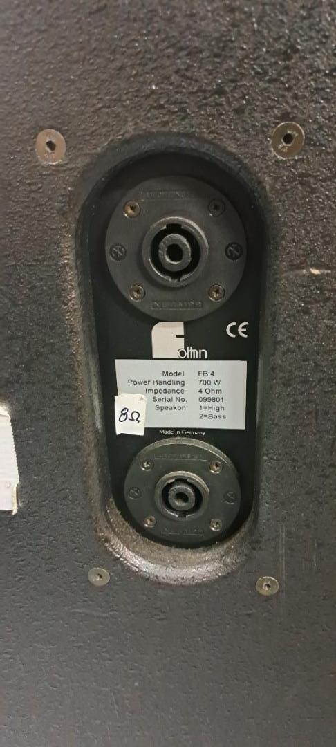 Ich verkaufe insgesamt 2x FH3r und 2x FH3i mit nachträglich eingebauten Griffen (eingefräste Marshallgriffe) und 4 Stück FB4 (15" RCF- Version). 1 Fohhn FC-3 Controller.