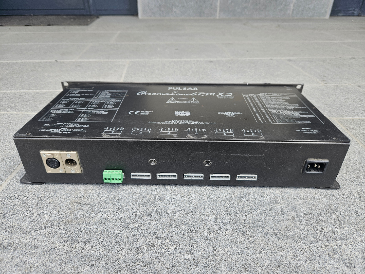 Es handelt sich um einen 6 Kanal DMX RGB LED Controller, der z. B. für die Pulsar Chromapanels verwendet wird.