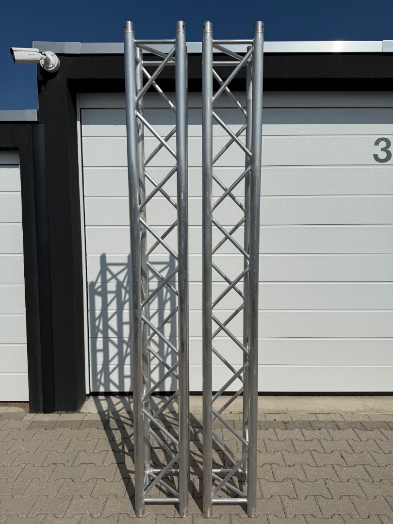 Milos QTU2500 - 2.5m square truss, compatible with Eurotruss/Global Truss systems. Includes two sets of eggs, pins, and clips (8 eggs, 16 pins, 16 clips).