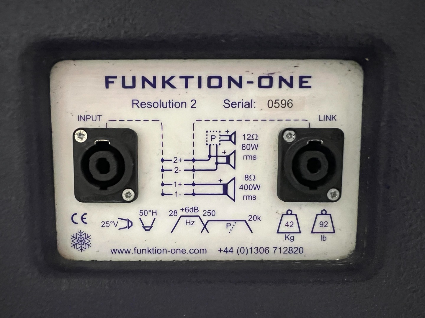 - 2x Funktion-One RES2 MK2 15"/8"/1" full-range speaker