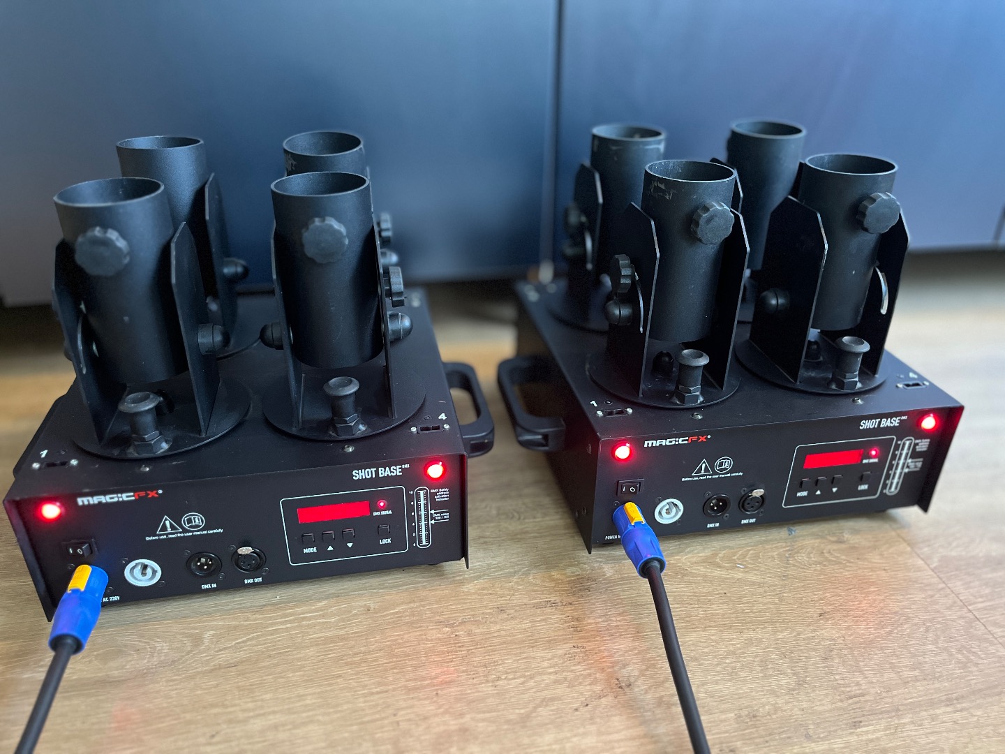 Zum Verkauf stehen zwei MagicFX Shot Base DMX in gebrauchtem, aber gutem und voll funktionsfähigem Zustand.