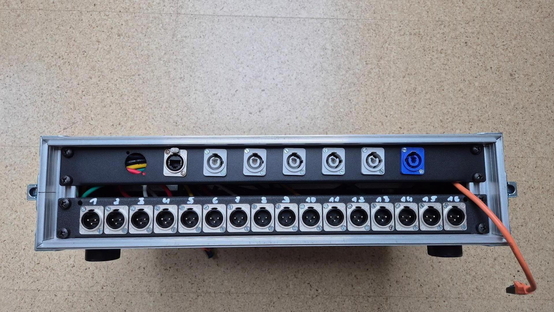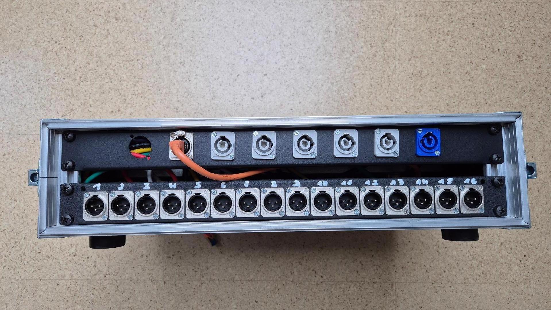 # 19"-Case mit Anschlußplatte (Power, Netzwerk und XLR-Anschlüsse), 2HE, mit PowerCon-Anschluß und -Verteiler, Powercon Anschlußkabel