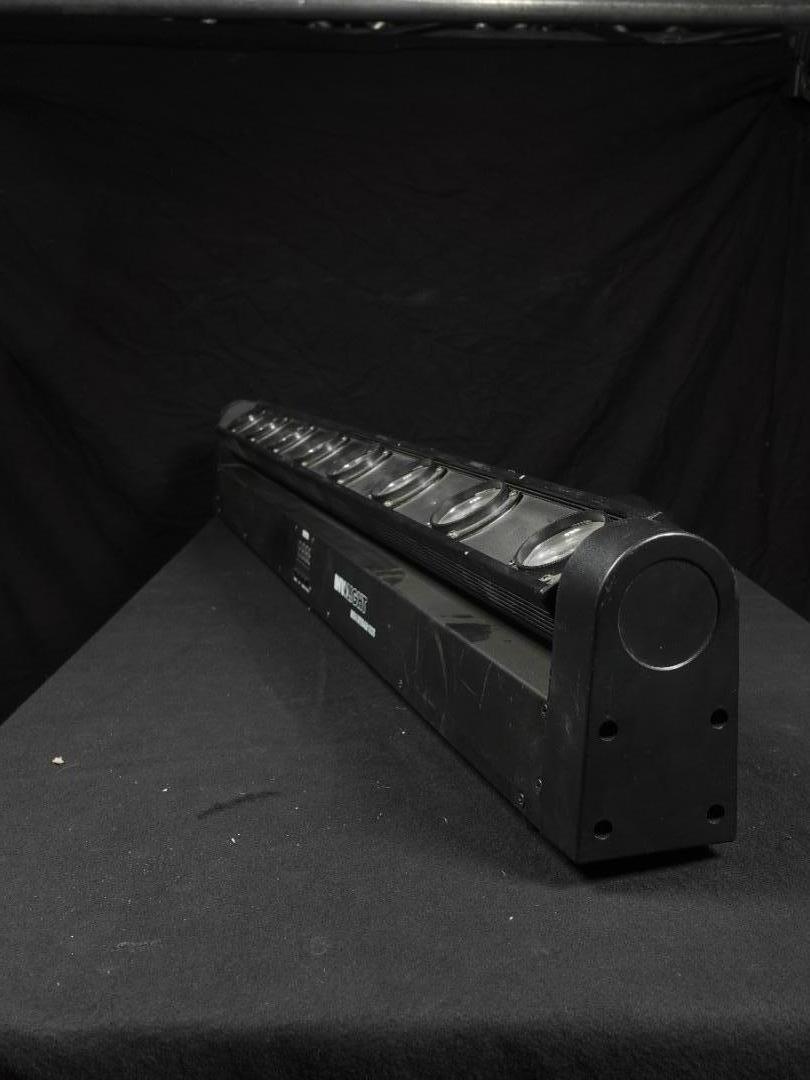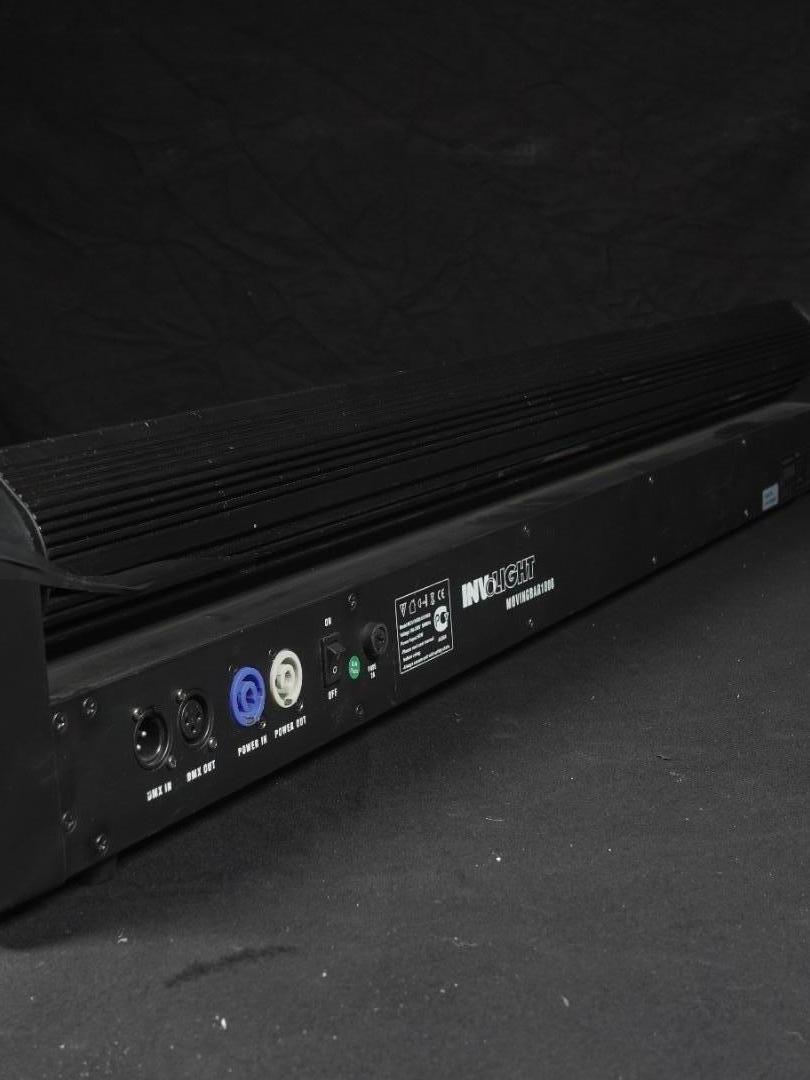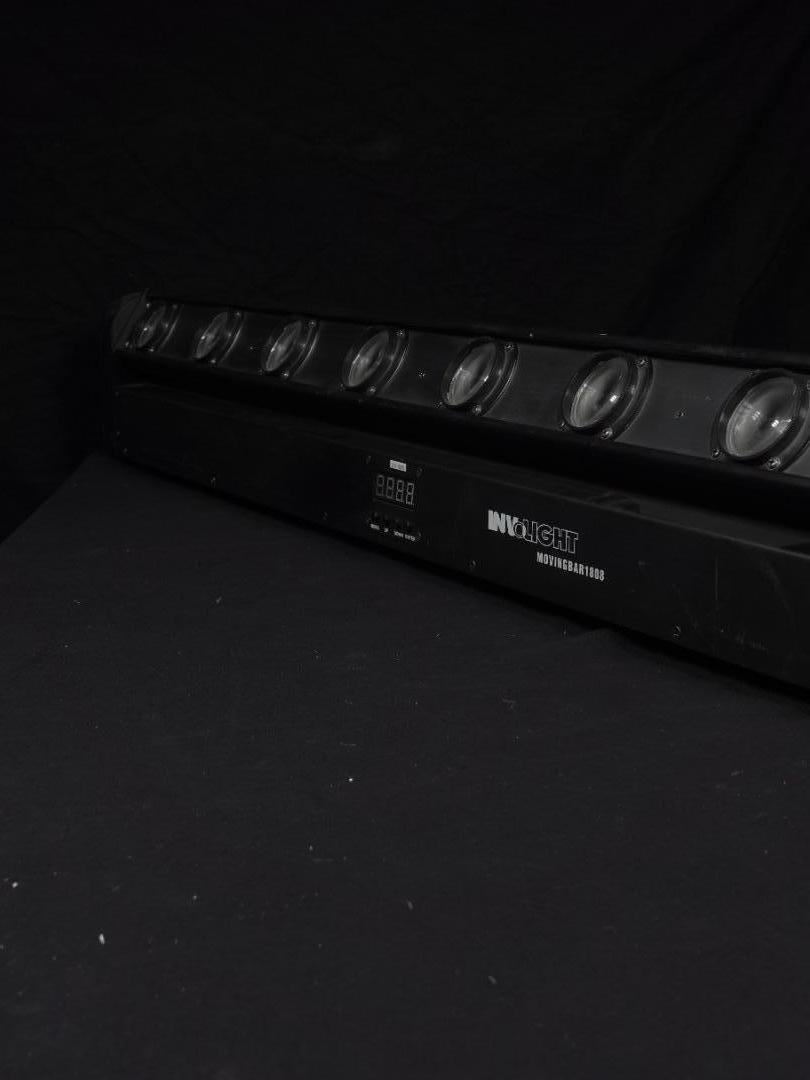 Die Moving BAR 1808 ist eine motorisierte Lichtleiste mit LED-Bestückung in den Farben rot, grün, blau und weiß. Sie kann stehend oder hängend verwendet werden und ist entweder als Stand-Alone Gerät oder via DMX steuerbar. Das integrierte Mikrofon für den musikgesteuerten Modus ist in seiner Empfindlichkeit regelbar. Zusätzlich sind bereits 22 Shows vorprogrammiert. Via DMX kann im anspruchsvolleren Modus über 38 Kanäle jede LED einzeln angesteuert werden.