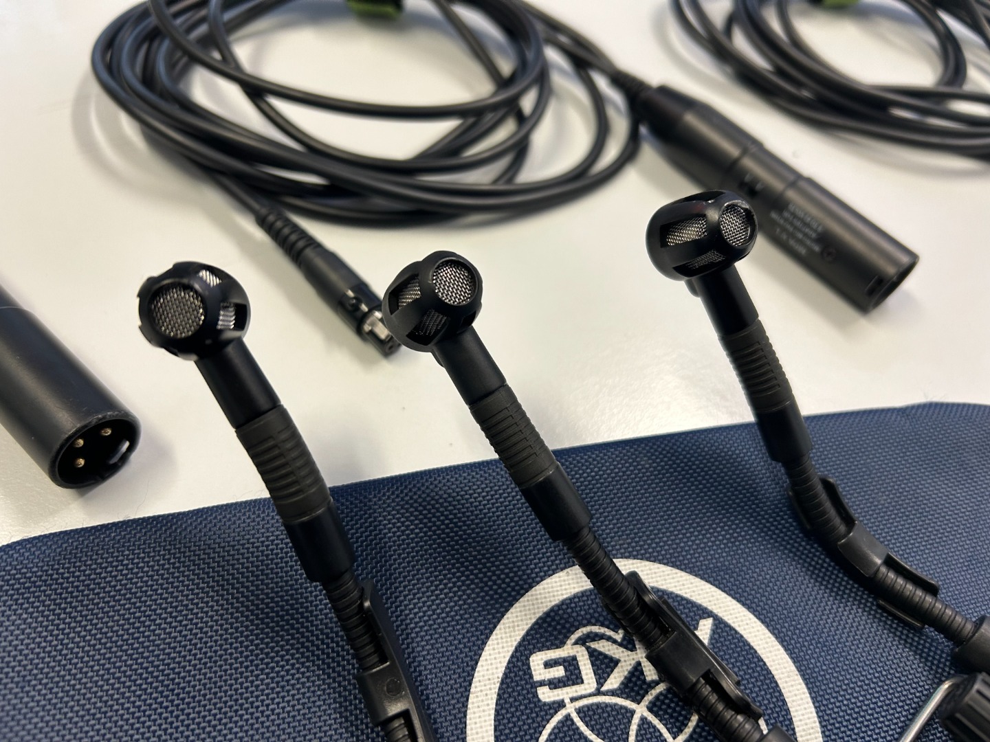 Kondensator Anklipp-Mikrofon, höhenverstellbarer Clip, abnehmbare original AKG Kabel mit Phantomspeiseadapter mit optionaler Klanganpassung.