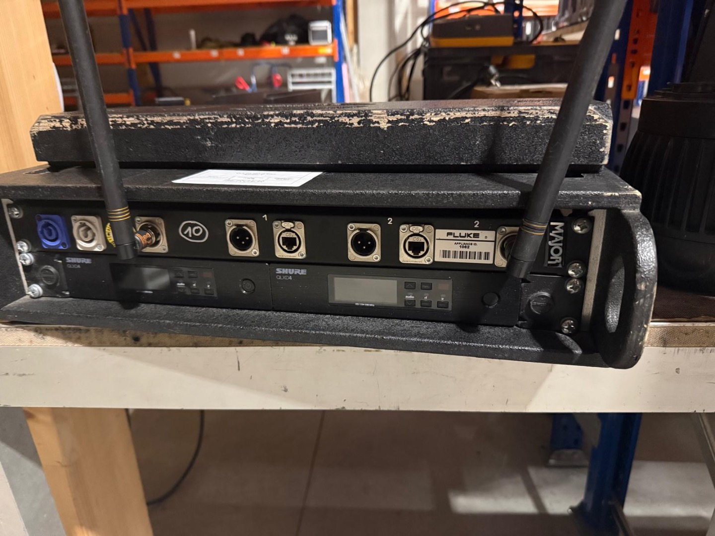 Sehr gut erhaltene Shure Doppelfunkstrecke im H51 Band. Immer im Case Transportiert voll funktionsfähig.
