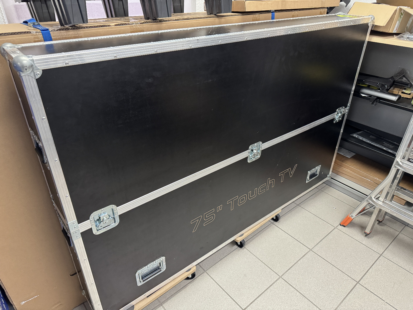 Zum Verkauf steht ein maßgefertigtes Transport-Case für 75-Zoll-Monitore oder Fernseher – geeignet für Standard- und Touch-Displays. Das Case ist ohne Innenausbau, lässt sich aber leicht mit dem Schaumstoff aus der Originalverpackung des Monitors auskleiden. Es wurde ursprünglich für den sicheren Transport von 75" Touchscreens inkl. Wandhalterung konzipiert. Mit Filz-Kantenschutz, sehr stabil und kippsicher.