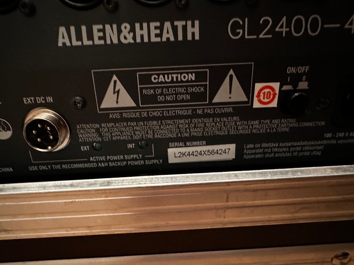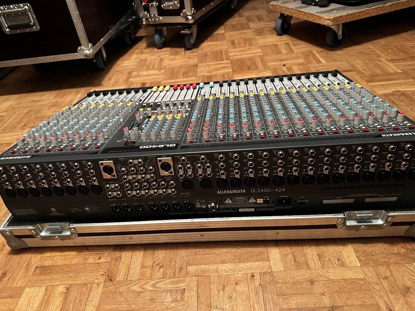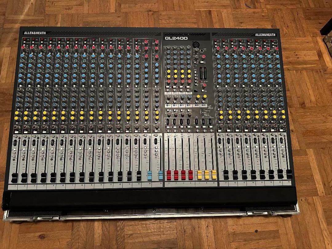 Wenig genutztes Allen & Heath GL2400 Mischpult. Alle Kanäle funktionieren, Gebrauchsspuren hat das Pult an sich kaum. Dabei ist ein Case von Thon, das hat deutliche Gebrauchsspuren. Das Pult stand hauptsächlich in seinem Case verpackt rum und wurde entsprechend sehr wenig genutzt.