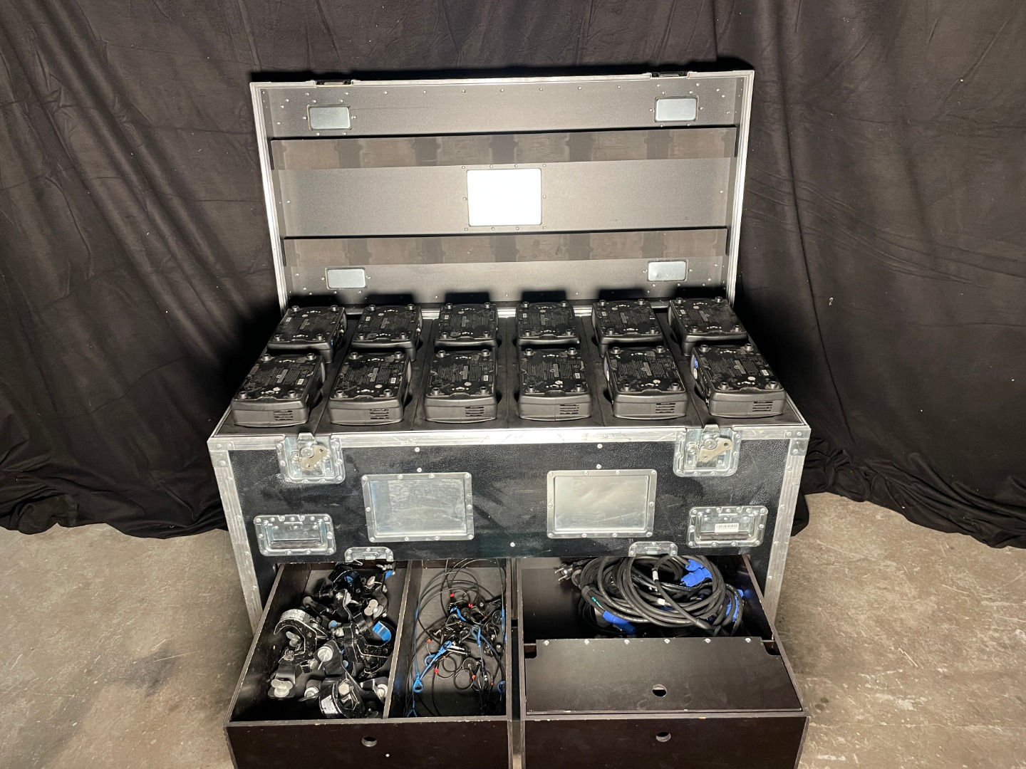 Zum Verkauf stehen 30 Robe 100 LEDBeams. Der Zustand ist gebraucht. Es wird nur als ganzes Set verkauft. Bestehend aus 1x 12er Case und 3x 6er Cases.