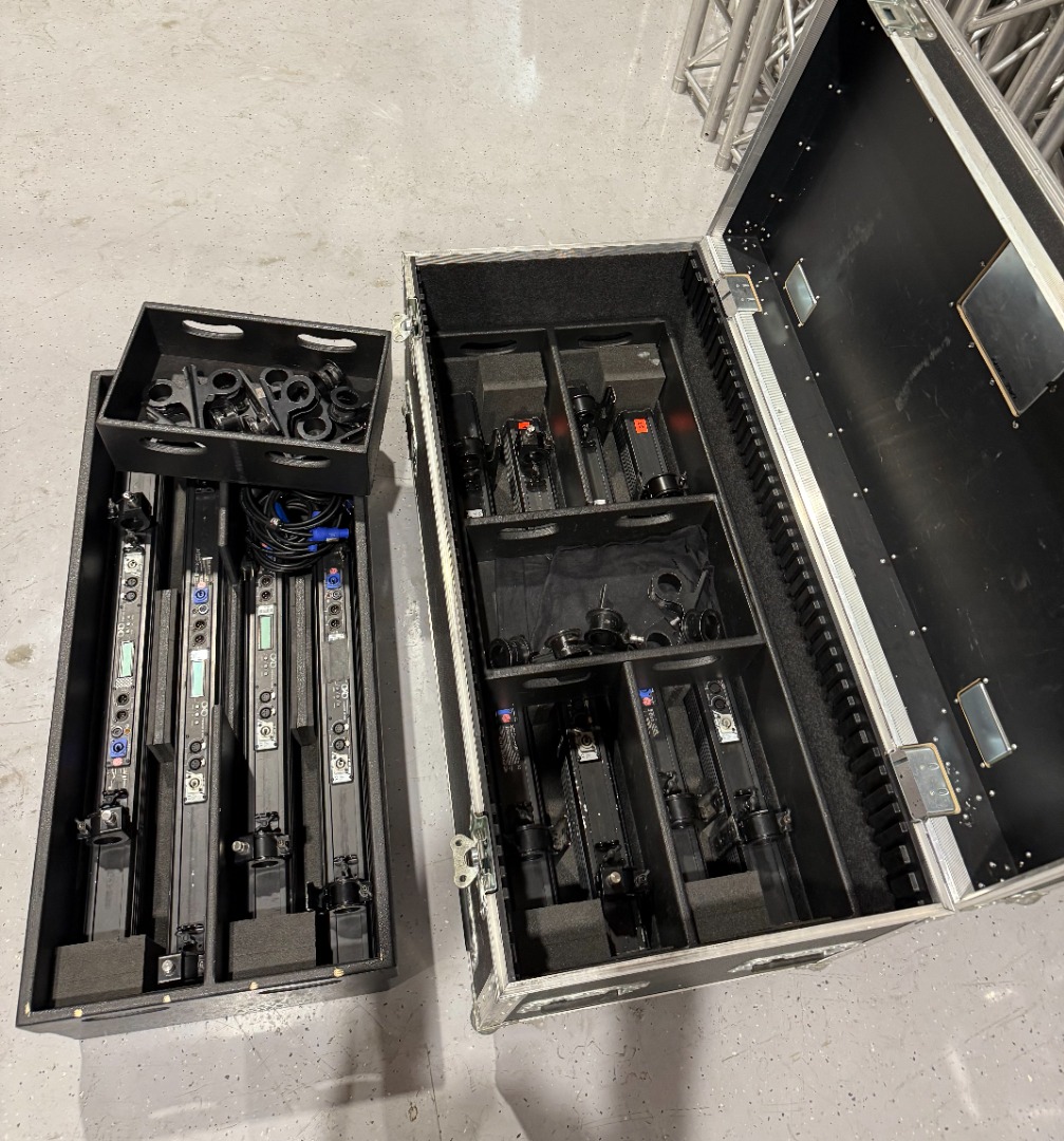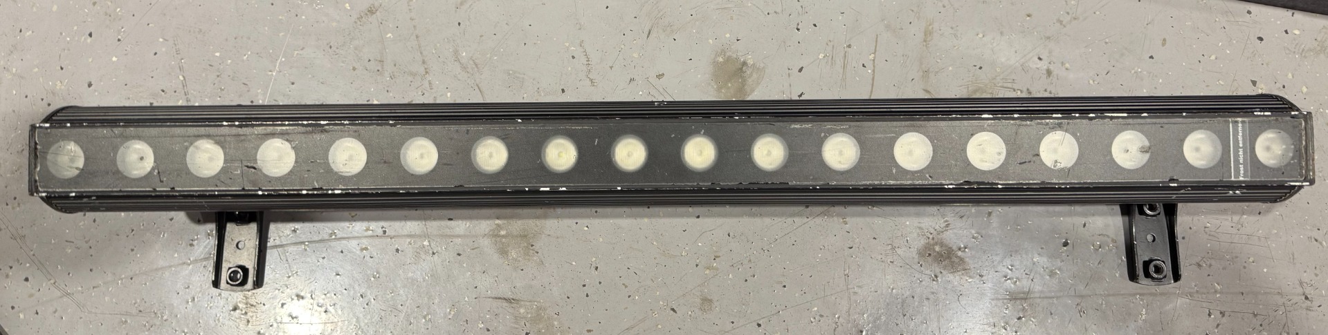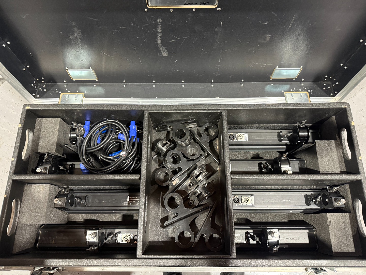 Insgesamt 20x OXO Pixyline 18x8W LED BARs RGB+W mit Pixelansteuerung (Baugleich mit Litecraft AT10.SX LED BARs) in gutem Gebrauchtzustand (Technisch funktionsfähig, optisch teilweise mit Gebrauchsspuren). Die LED-BARs wurden mit verschiebbaren 50mm Rohrschellen zum schnellen & einfachen Wechsel zwischen Stellfüßen und TV-Spigot Aufnahme ausgestattet! Auf den LED BARs wurde eine leichte Frostfolie fix verklebt um eine homogenere Farbmischung zu erwirken, diese lässt sich jedoch bei Bedarf einfach entfernen.