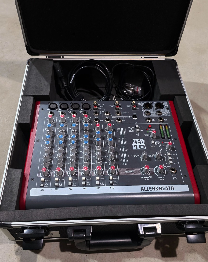 Wir verkaufen ein Allen&Heath ZED10 Kompaktmischpult mit Thomann-Koffer.