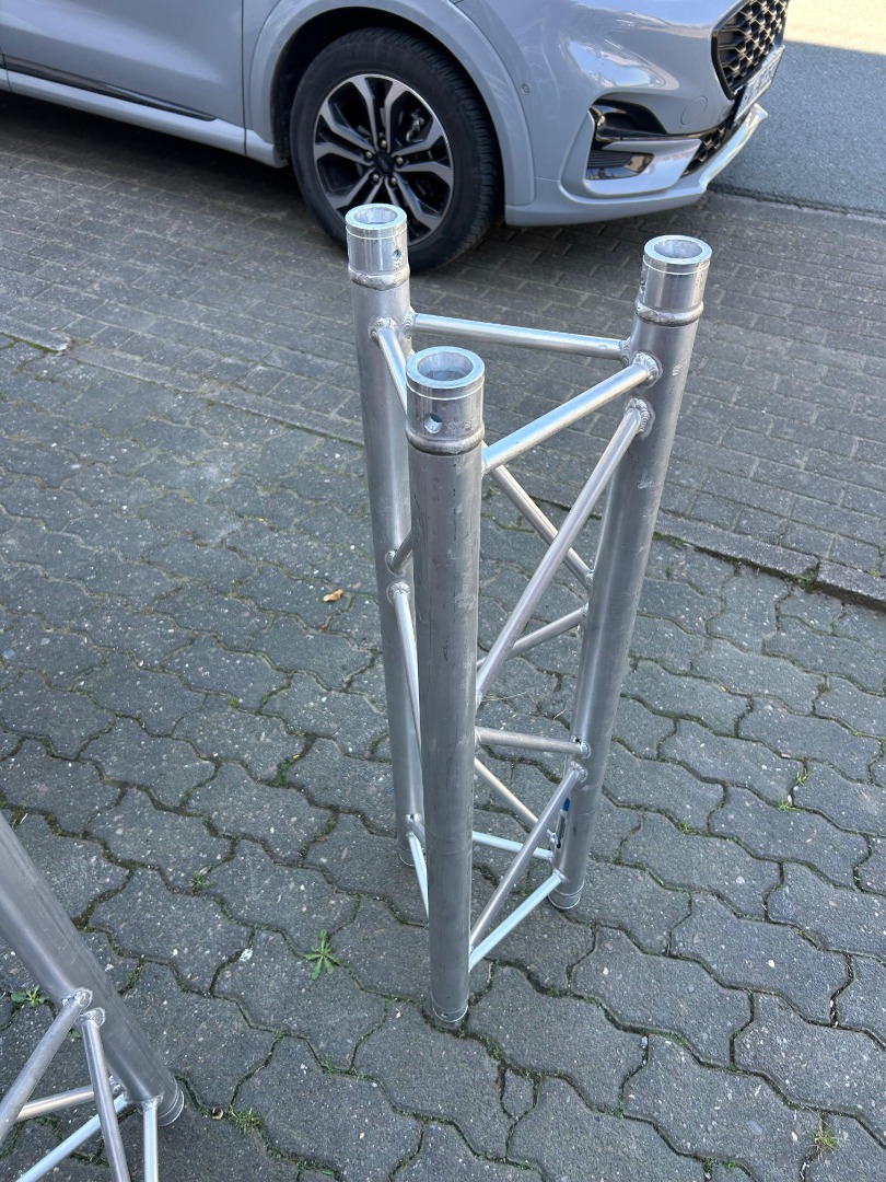 Guten Morgen! Ich biete hier ein Komplettes Traversenset von Alutruss an. Die Traversen sind in einem sehr guten zustand, sie wurden als Messestand genutzt und waren nicht oft im Einsatz.