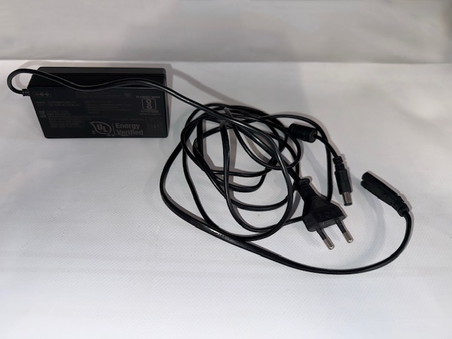 Eine Stativplatte, ein Netzteil sowie das Case liegen bei.