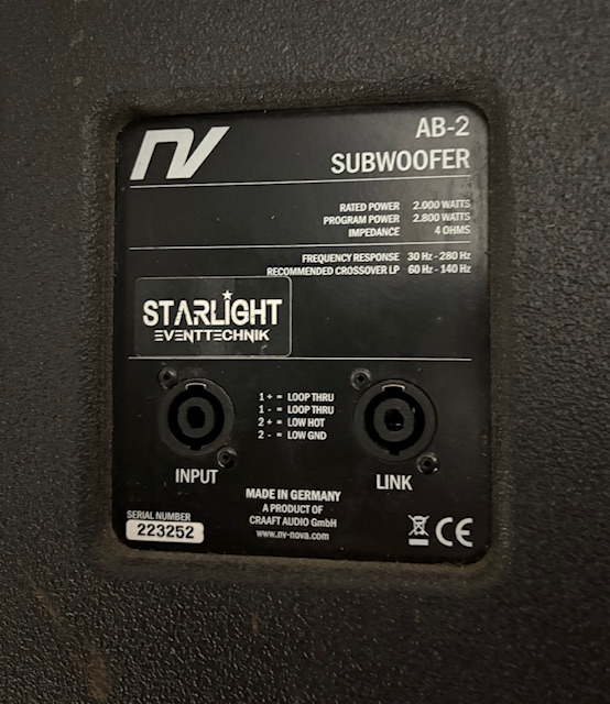 Das AT2 Topteil ist 2-weg Aktiv getrennt. Die Endstufenpresets sind fachmännisch eingemessen worden und sogar mit FIR-Filter versehen. Einen DC8000 Controllervon Nova würde es auch noch geben.