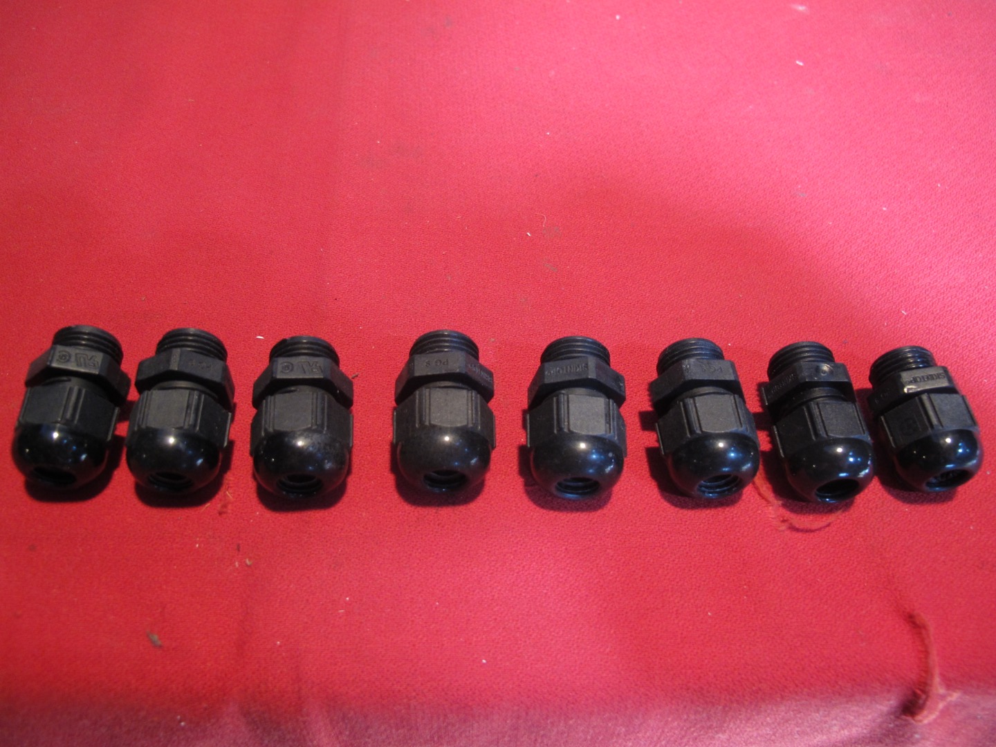 Ich biete 8 Stück gebrauchte Kabelverschraubungen PG9 mit schwarzem Polyamid Kunststoff für 3x1,5 qmm Kabel an. Die Kabelverschraubungen sind alle in Ordnung und funktionieren.