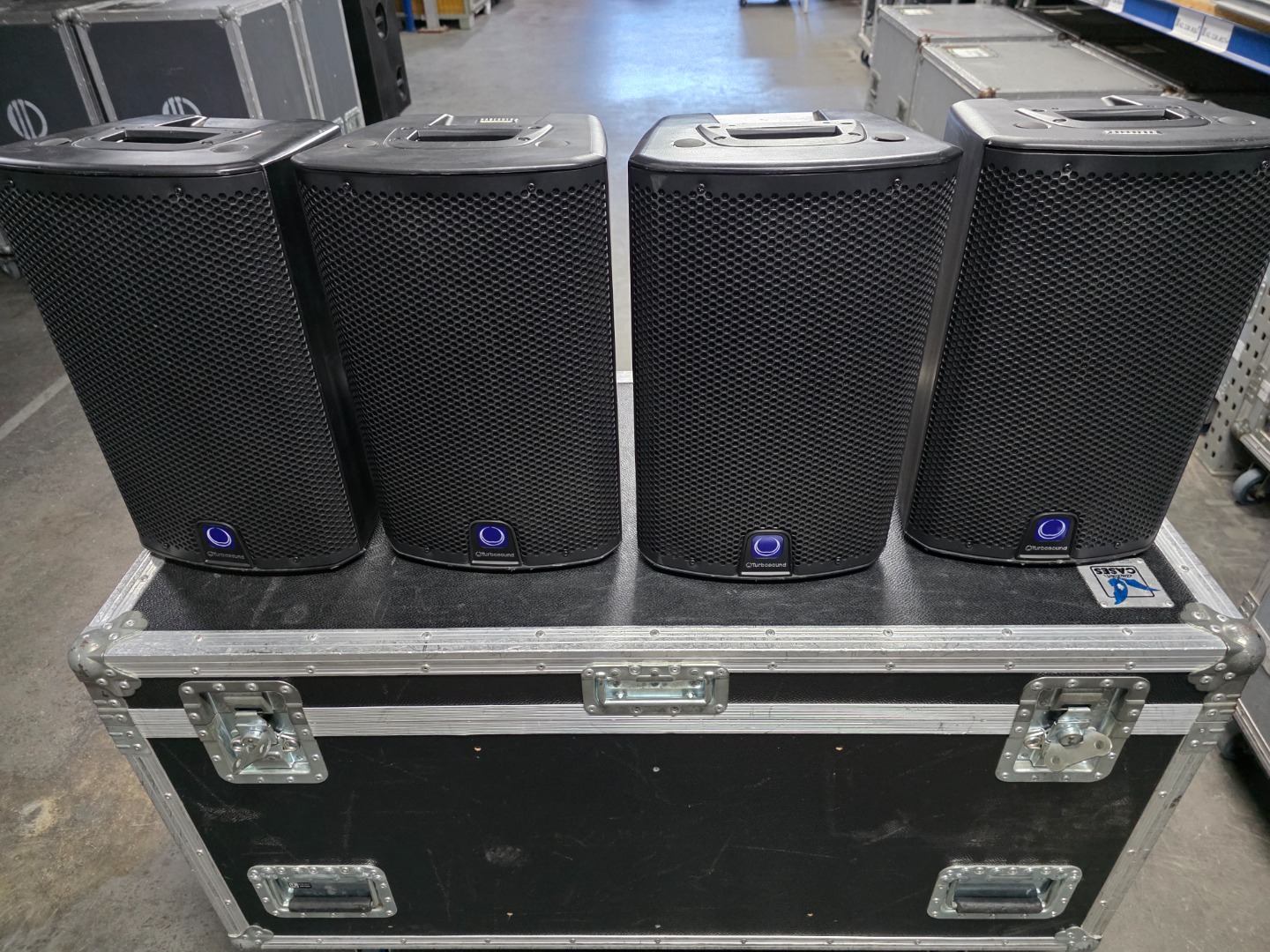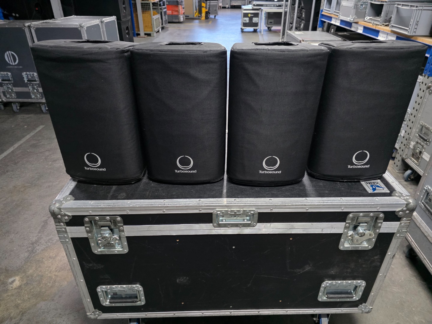 Turbosound 4x IQ8 - Custom case with 4x K&M 26750 Round Base Stands