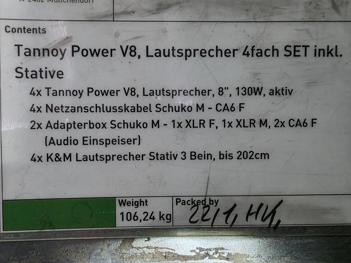 2x Cases available (Note: One case has only 3x V8 Speakers, but 4x stands)