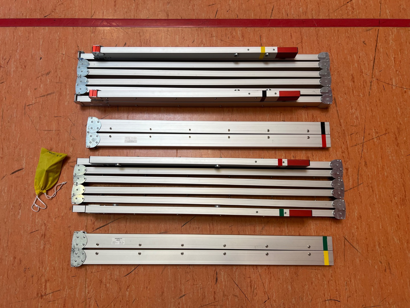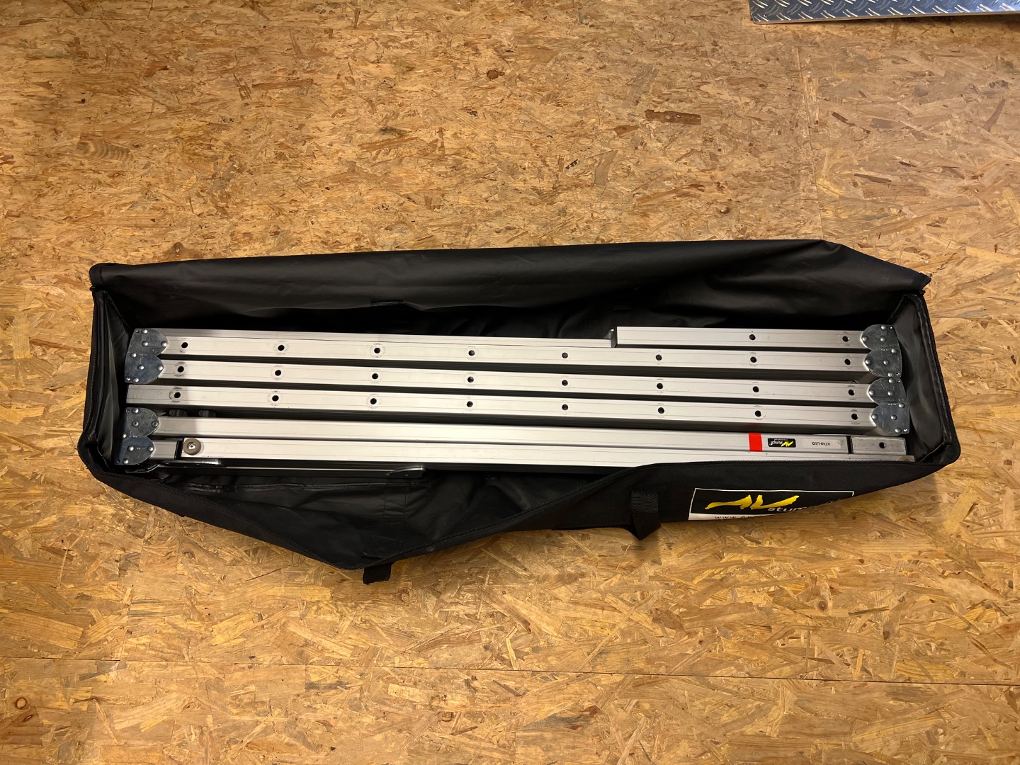 Füße bzw. Standbeine mit Transporttasche: 15,1 kg / 125 cm x 28 cm x 16 cm. An einem der beiden Füße, fehlt ein Endstopfen (siehe Bild; ohne Einfluss auf Funktion).