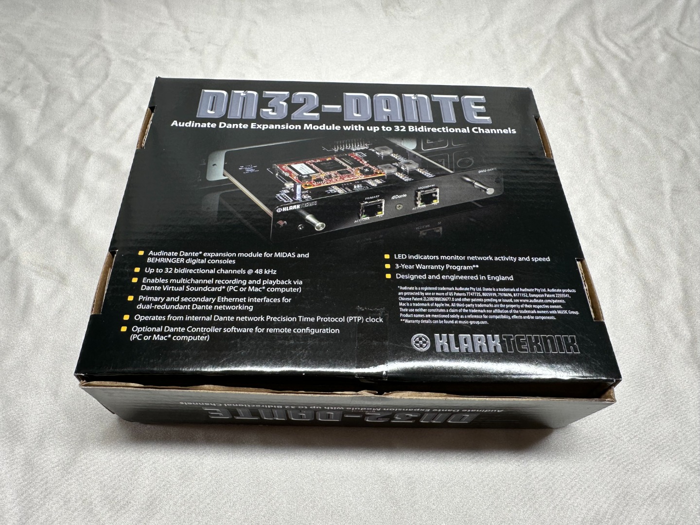 Es handelt sich um eine Audinate Dante-Karte für Midas M32 oder Behringer X32. Sie ist in einem sehr guten Zustand und funktioniert einwandfrei.