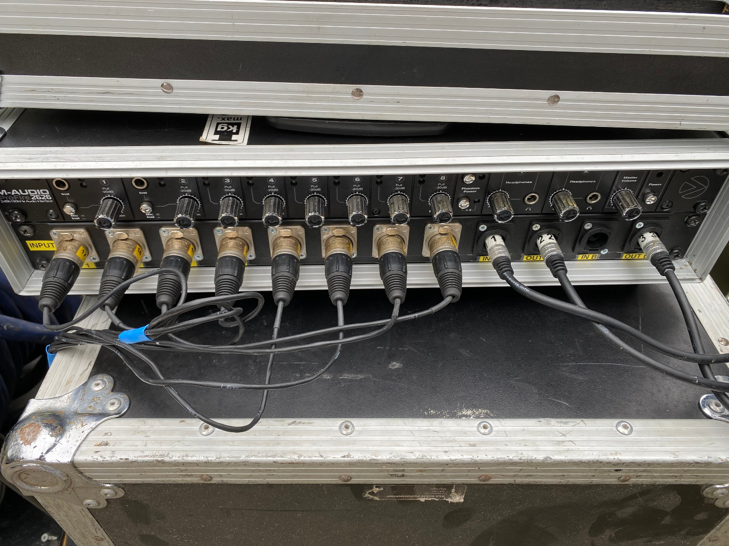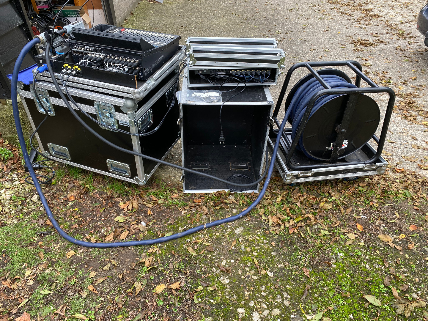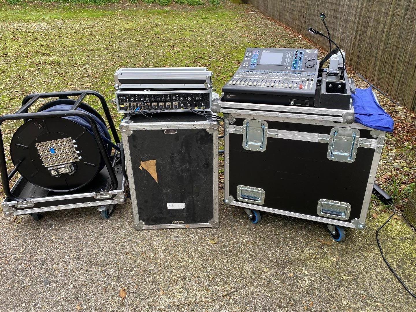 De mixer, geluidskaart en multikabel zitten allemaal in een eigen kist