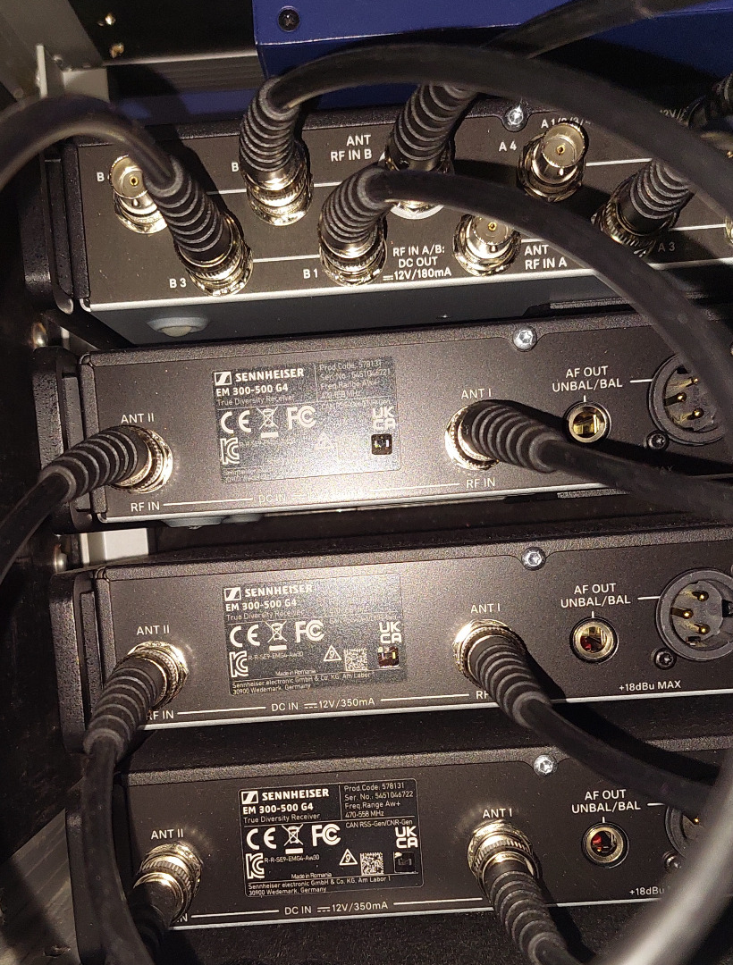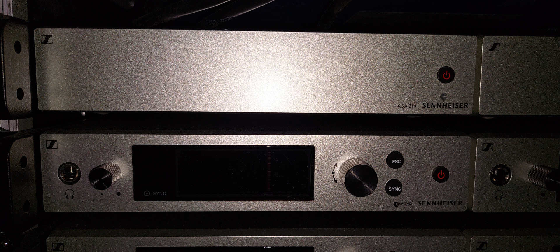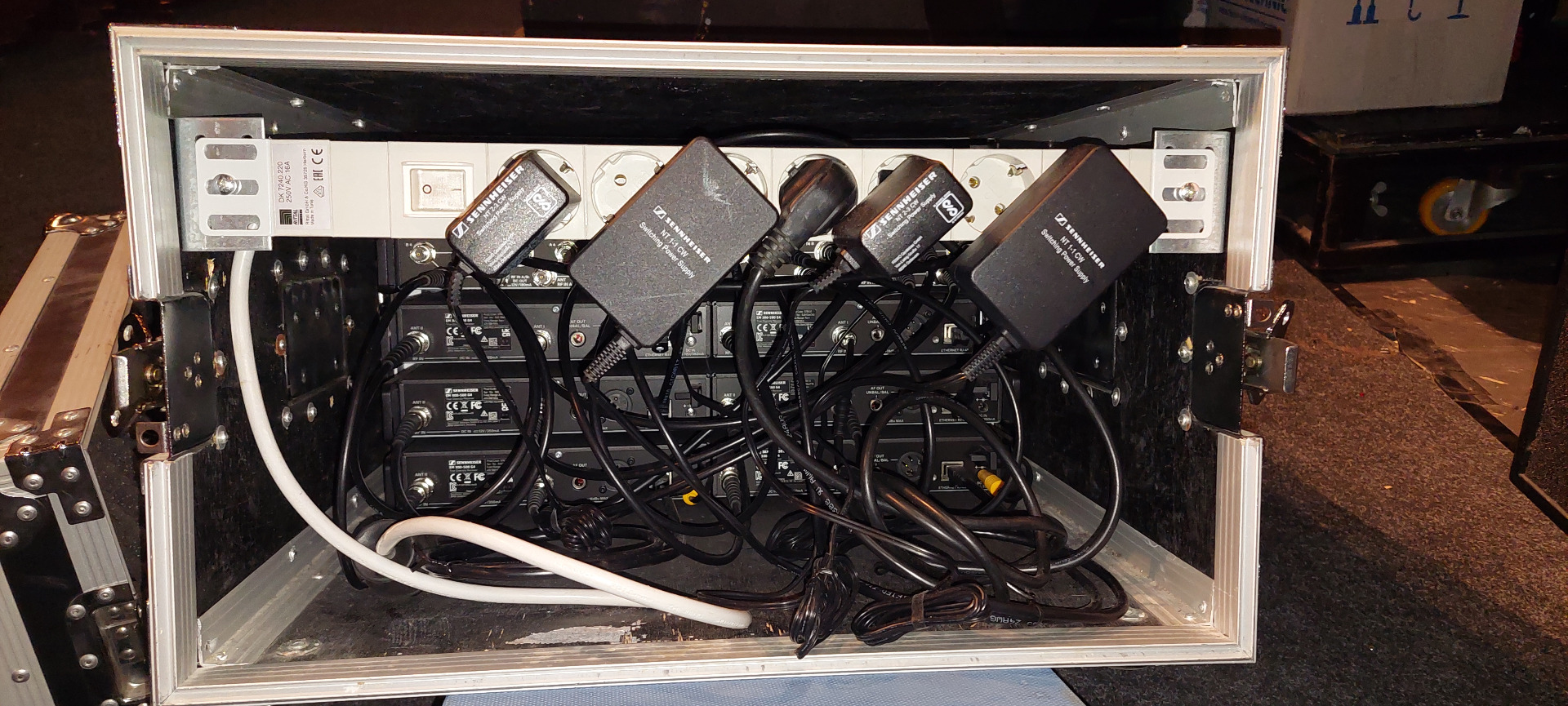 Die Receiver sind vollständig im Rack verbaut und kommen mit sechs Taschensendern, den dazugehörigen Mikrofonen, zwei Antennensplittern und einem Gigabit-Switch.