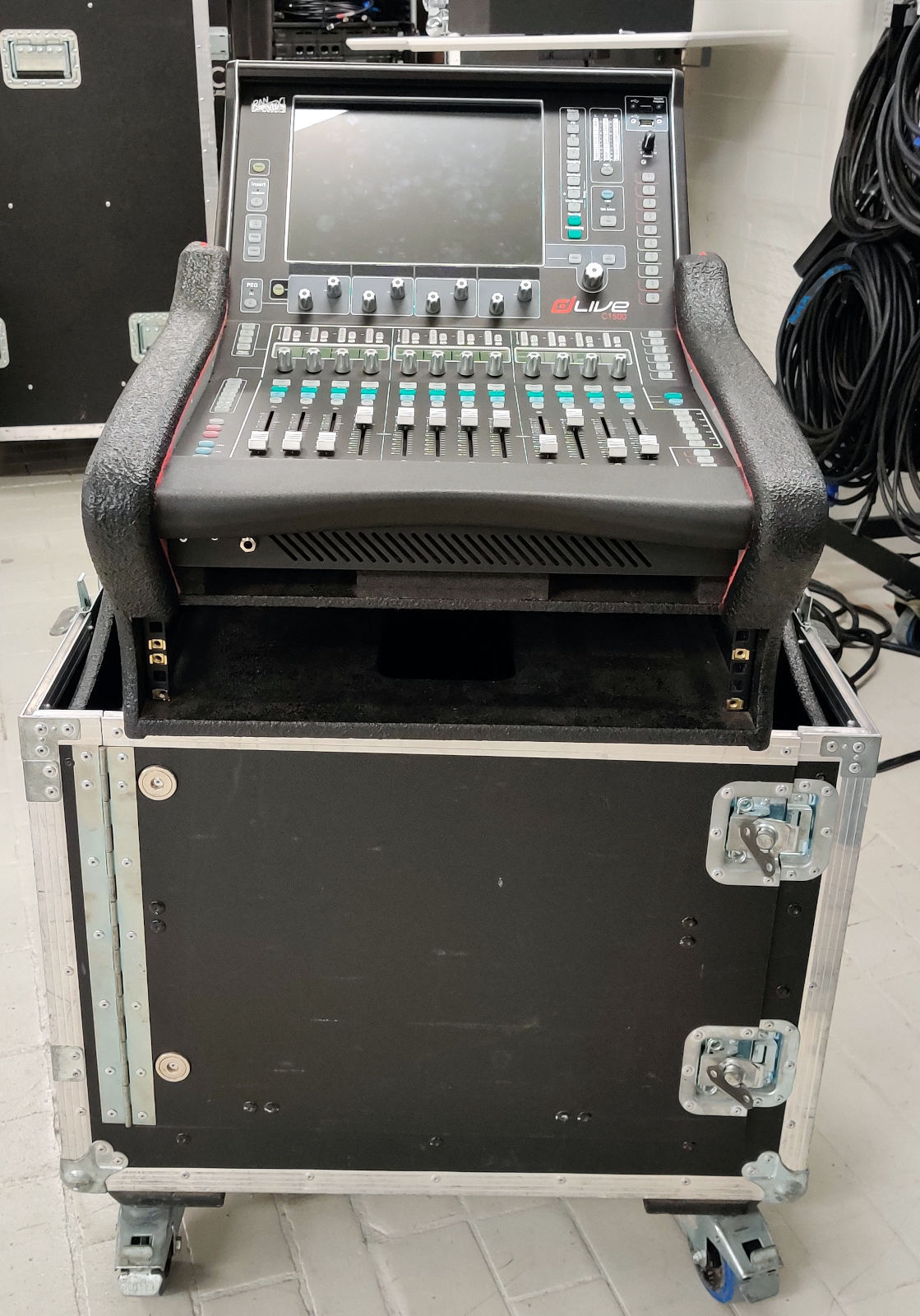 Professional digital mixing console paired with a custom-built touring flipcase, previously owned by a production company and used for live events in controlled environments. Maintained with care, consistently stored in its case, and only minimally marked from transport. All features, including faders, encoders, and touchscreen, are fully functional with no missing parts or dents, and the case has only light surface marks from normal use.