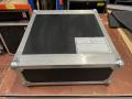 Stabiles Case mit 6 Griffen, Rollen, sodass die Haube hinter dem Pult stehen kann, ordentlich gepolstert, mit Dog-House für Steckdosenleiste und Router etc.