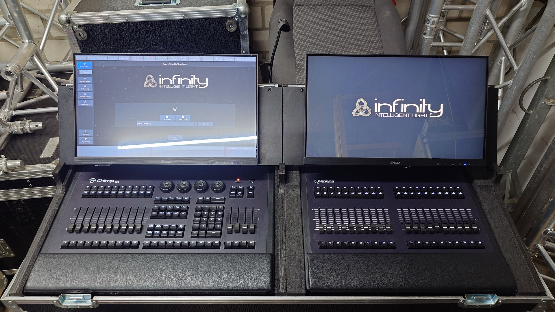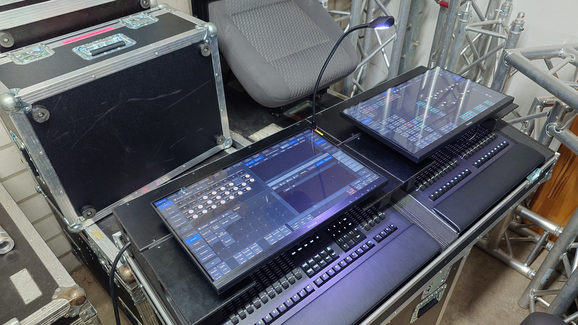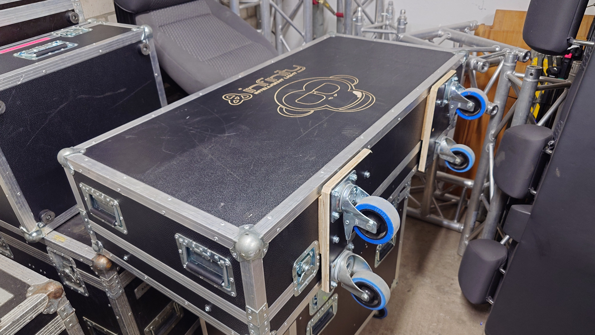Lichtsteuerkonsole mit Wing und Bildschrimen im Flight Case inkl. Rollen.
