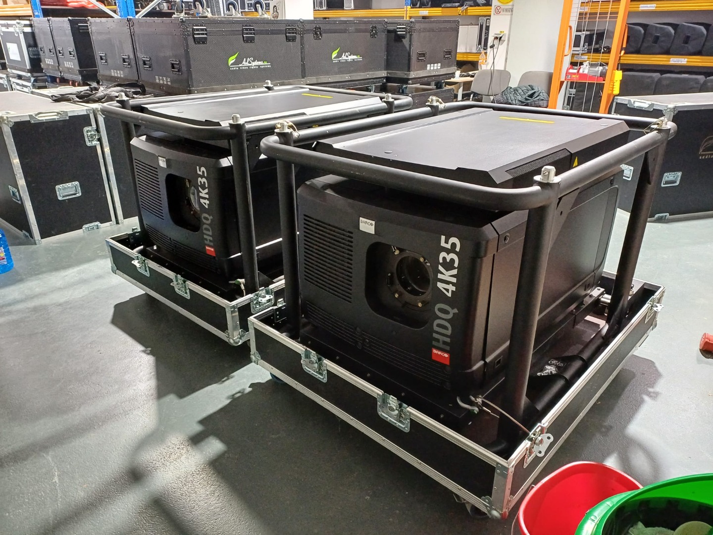 2 projectors Barco HDQ4K35 with frame,flightcase,in perfect condition with maximum 350 hours per piece