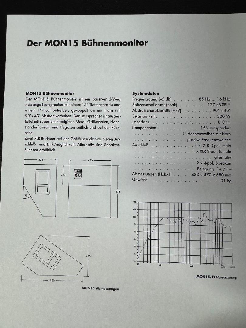 Diese Monitore sind mit einem 15" und 2" (90x40 Grad Horn) bestückt.