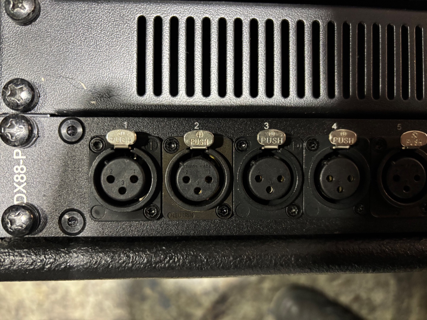 DX88-P Stagebox, professionell in 19“ 1HE Aluminium Gehäuse verbaut mit lasermakierter Beschriftung.