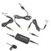 Zwei Sendemodule (TX) mit integriertem Kondensatormikrofon (Kugelkapsel) und ein Empfangsmodul (RX) mit Headset-Anschluss für drittes Mikrofonsignal