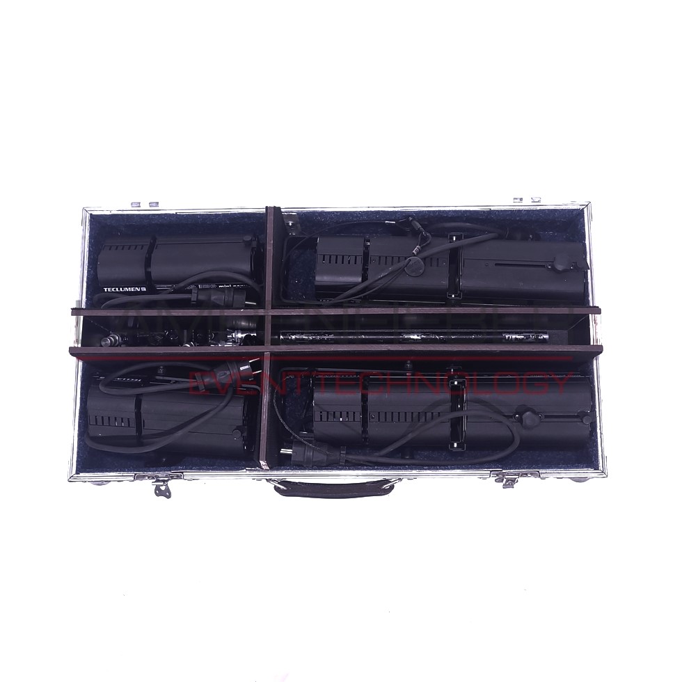Handliches Profil mit kleinen Abmessungen, mit 50W LED-Quelle, 20°/38°-Optik, Dimmsteuerung, Stand-Alone-Funktionen, manuelle Regulierung von Zoom und Fokus, komplett mit Farbrahmen.