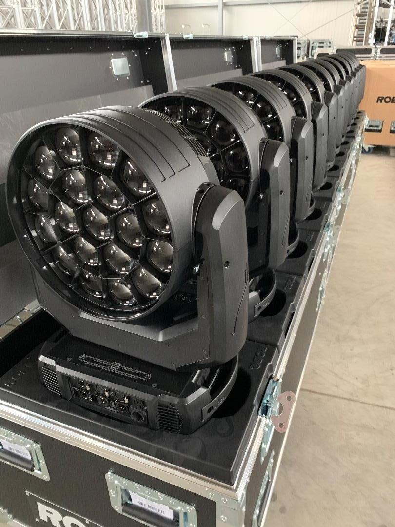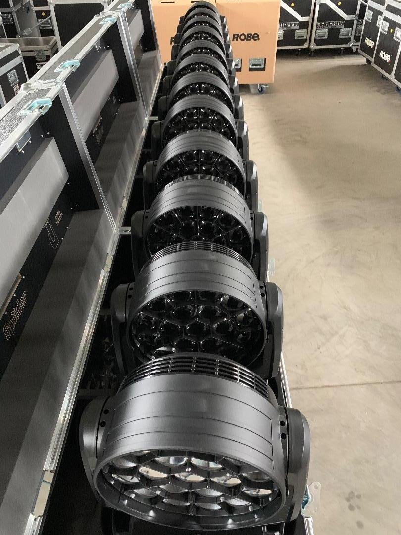 The Robe Spiider® – Unsere superhelle LED-WashBeam-Leuchte hat wirklich Maßstäbe in Sachen Leistung gesetzt! Die Verwendung von 18 x 40 Watt und 1 x 60 Watt LEDs, kombiniert mit einem hocheffizienten 12,5:1 Zoom-Optiksystem, das von engen 4° Beam bis zu breitem 50° Wash reicht, macht den Spiider® zum Marktführer in seiner Klasse. Eine wunderschöne Konvergenz von Hard-Edge-In-Air-Effekten, druckvollen Balken und glatten, homogenisierten, satten Farbwaschungen ist im einzigartigen Spiider® verkörpert!