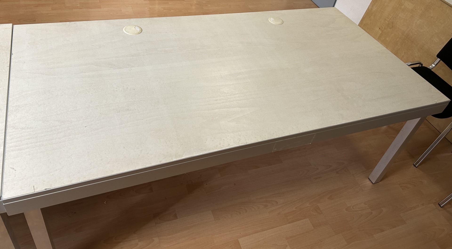 Einige der Tische haben Kabelführungen an der Unterseite der Tischplatte.