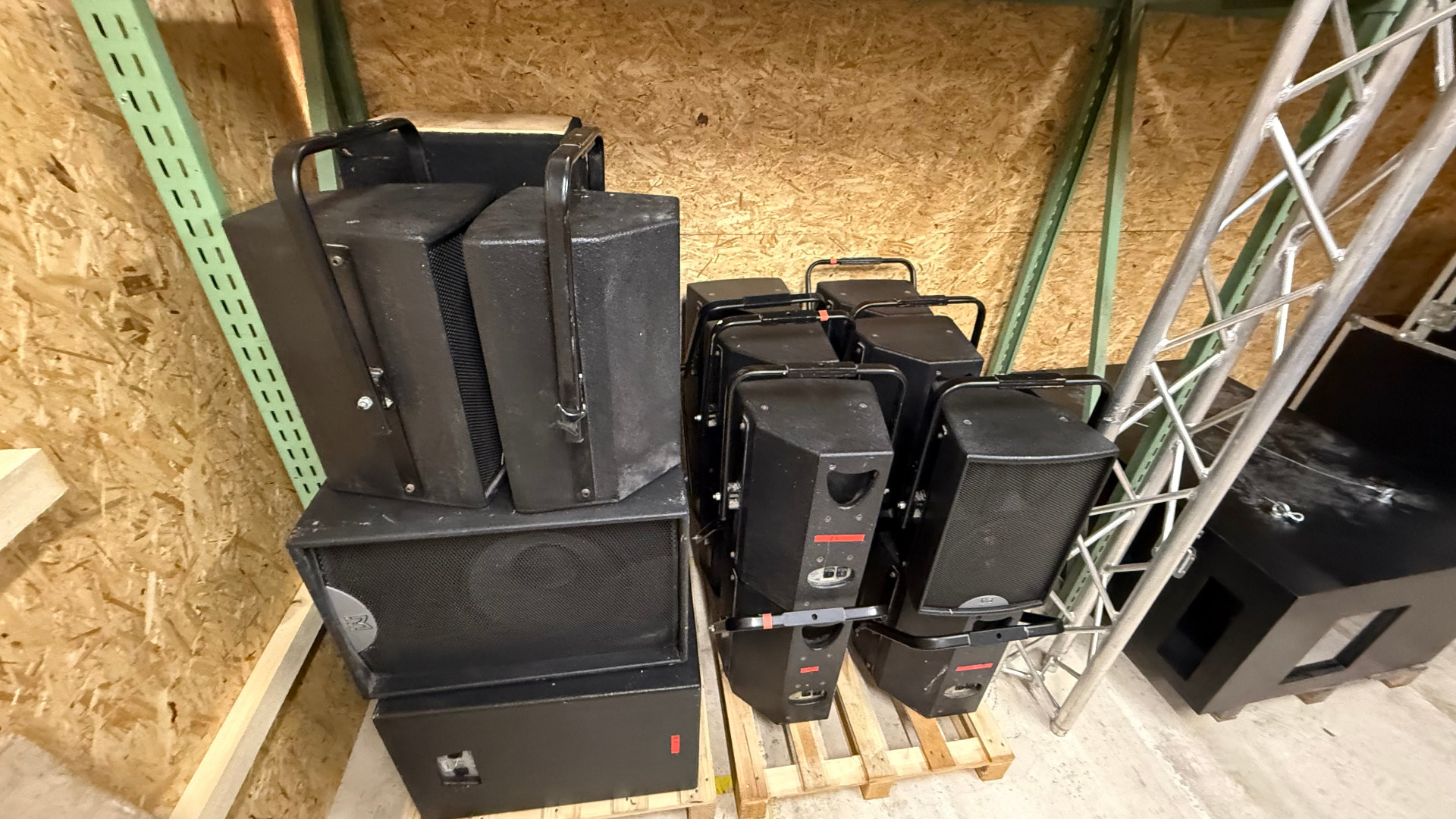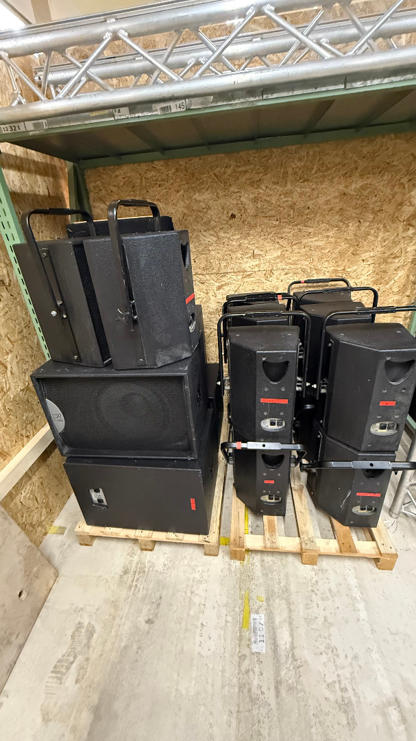 16 × F10 Fullrange + 6 × S15 Subwoofer, jeweils mit originalen Montagebügeln.