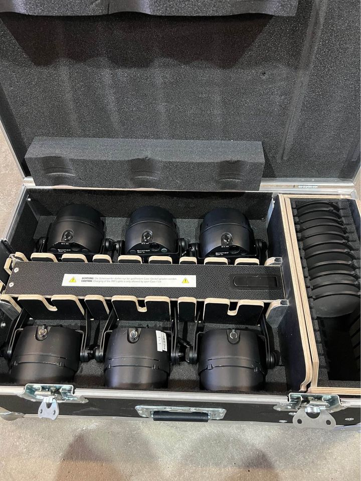 6 pcs Drop 1B - 1x15 W  6-in-1 RGBWA+UV LED (each) Up to 12 hours running time, W-DMX™ receiver