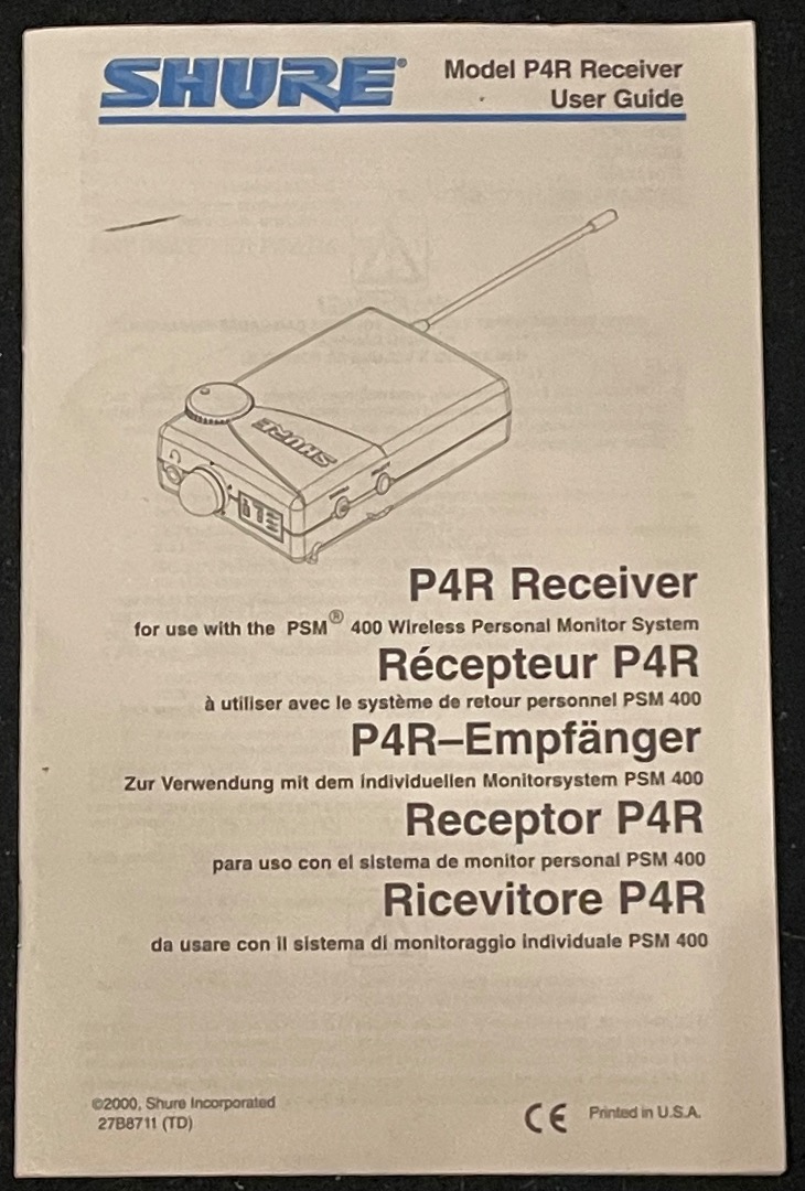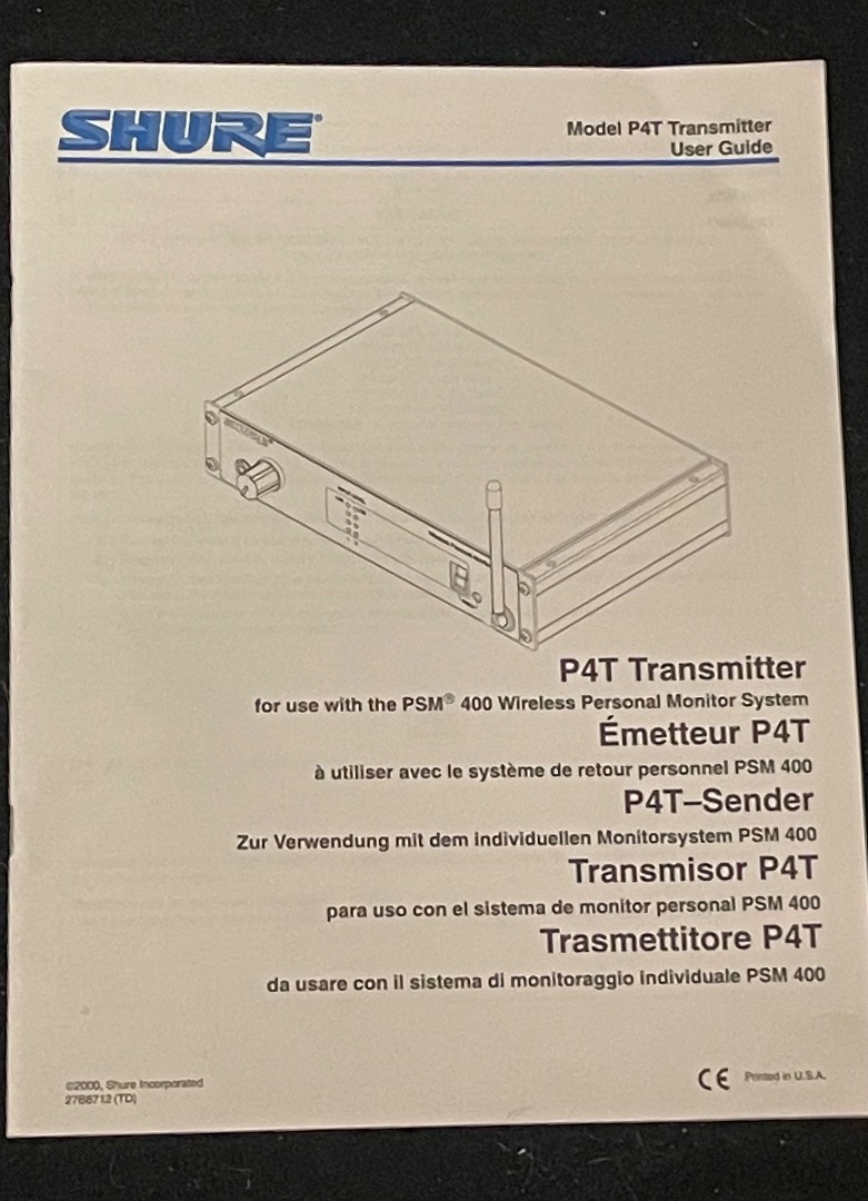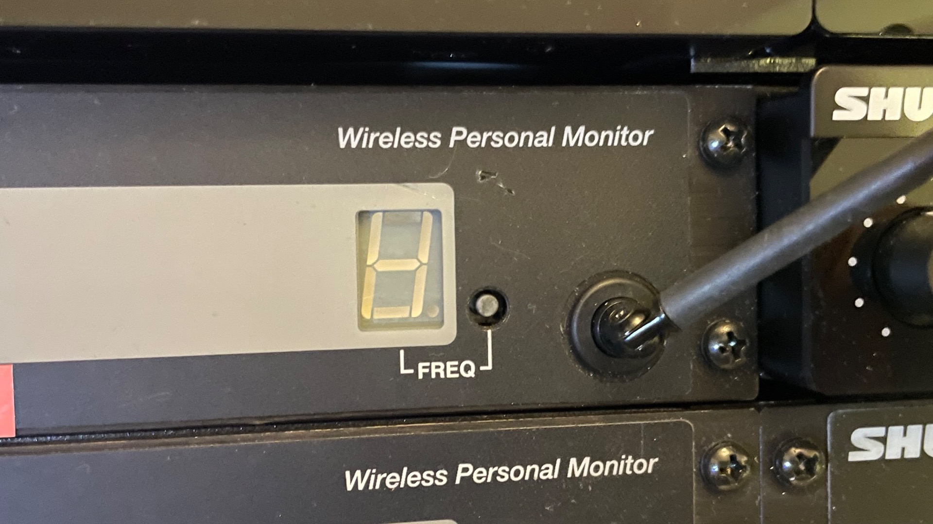 Shure in ear system bestehend aus: 6 Stereotransmittern (also 12 separate Monosignale) und 15 Bodypack Empfängern - fix und fertig im Rack verkabelt.