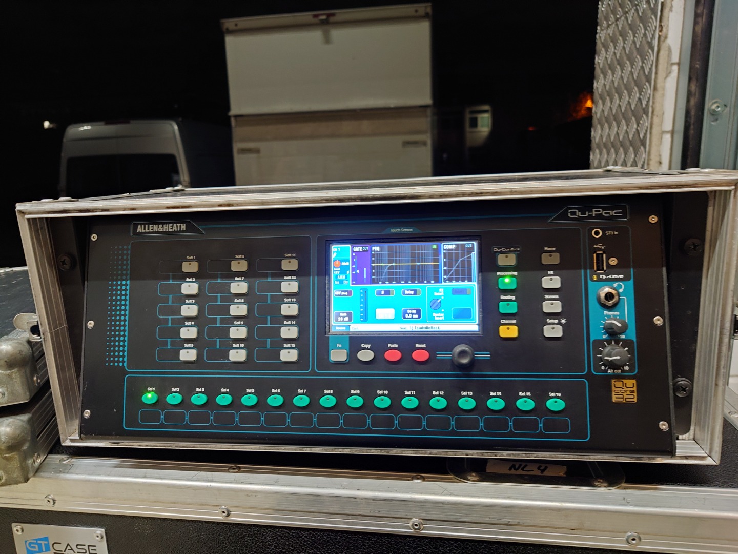 ich verkaufe hier einen Digitalmixer aus dem Hause Allen&Heath, es handelt sich um die Rack-Ausführung Qu-Pac. Der Mixer hat die gleiche DSP-Engine, we der Qu32, kann also bis zu 32 Mono- und 3 Stereoinputs verwalten (insgesamt also 38 Inputkanäle). 16 mono Mic-Inputs und 3 stereo Line-Inputs sind physikalisch am Gerät vorhanden, die restlichen können über eine externe Stagebox realisiert werden (alle AR- uns AB-Serie Stageboxen von A&H sind kompatibel). Die Bedienung erfolgt über einen WLAN-Router und ein Smartphone bzw. Tablet mit der entsprechenden App (gibt es für Android und IOS). Es ist allerdings (im Gegensatz zu vielen Konkurrenzprodukten) auch möglich, sämtliche Funktionen über den vorhandenen Touchscreen sowie die Bedientasten am Gerät selbst zu steuern. Somit hat man die Sicherheit, alles bedienen zu können, selbst wenn das WLAN versagt oder der Akku des Tablets leer ist. Für mich war das Gerät optimal, da es extrem wenig Platz auf der Bühne beansprucht und leicht zu transportieren ist, so dass man es problemlos zu jedem Gig mitnehmen kann, sogar z.B. im Flugzeug als Handgepäck. Ein passendes Leichtbau-Case von Thomann ist mit dabei. Der Mixer befindet sich in einwandfreiem Zustand, alles funktioniert perfekt. Das Case hat zwar kosmetische Gebrauchsspuren, ist aber auch absolut OK und nutzbar. Der Käufer erhält eine Rechnung mit ausgewiesener MWSt.. Verkauf nur an Gewerbetreibende unter Ausschluss von Sachmängelhaftung / Gewährleistung / Garantie / Rücknahme.