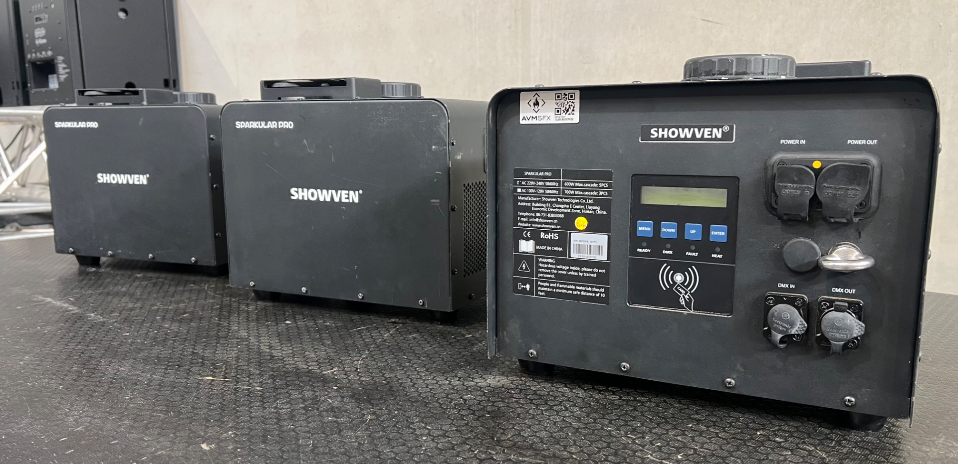 Each unit produces sparks up to 5.5 meters high and is fully DMX controllable.