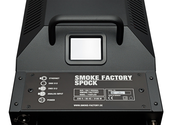 Die SPOCK ist die zweite Maschine aus dem Hause Smoke Factory die mit neuer digitalerTechnik und einem Touch- Display ausgestattet ist. Neben der neuen Düse, die eine Lautstärkereduzierung um bis zu 20 % bewirkt ist die SPOCK mit Features wie einer Kennlinienanpassung und einem Stundenzähler für Heiz- und Nebelzeit ausgestattet. Durch den Einsatz zwei verschiedener Fluidpumpen, liefert die SPOCK auch im unteren Bereich einen konstanten und gleichmäßigen Nebel.