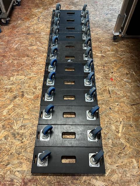 Biete 12 Stück Traversenrollwägen in schwarz an.