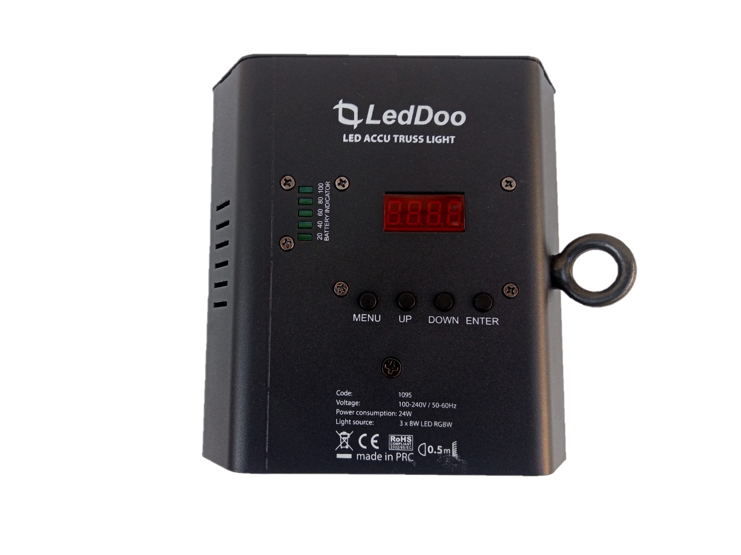 Angesteuert werden kann dieser Lichteffekt über DMX, im Automatik- und Musikmodus. Im DMX-Betrieb verfügt das LedDoo Accu Truss Light über 7 Kanäle.